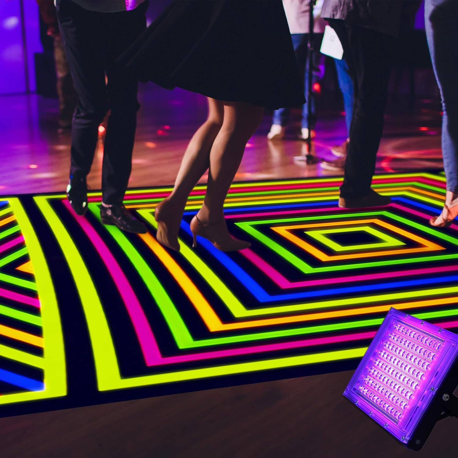 - Bright Fluorescent Color: the light up dance floor shines brightly under UV blacklight, with fluorescent orange, fluorescent blue, fluorescent green, fluorescent yellow, and fluorescent pink staggered against each other, making it simple to draw the attention of others; Please note that it will have the effect of fluorescence, but it needs to be irradiated by purple lamp to have the effect; If it is not irradiated, it is a normal pattern