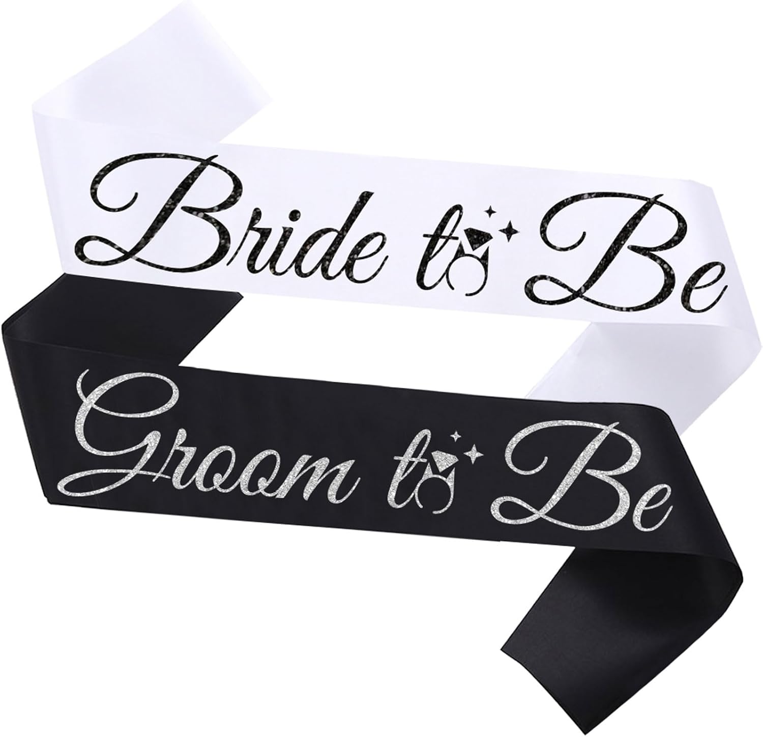 Bride Sash Bachelorette Party Bride and Groom to Be Sash for Bridal Shower Wedding Hen Party Decorations Engagement Gifts,White Black