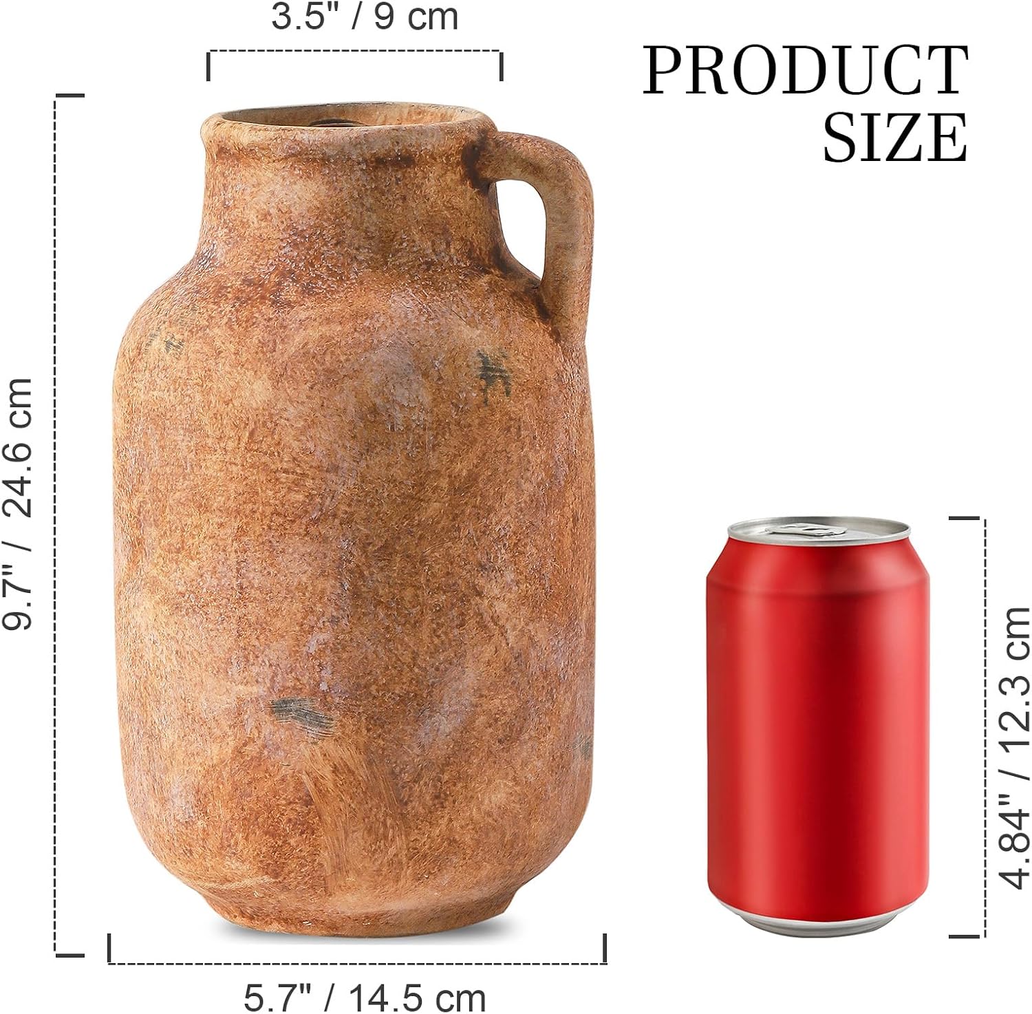 Ceramic Flower Vase Home Decor - 9.7 Inch Large Table Flowers Vases Living Room Bedroom Plant Decorations Farmhouse Vintage for Kitchen Shelf Office Coffee Dining Desk House Women (Rust, 9.7")