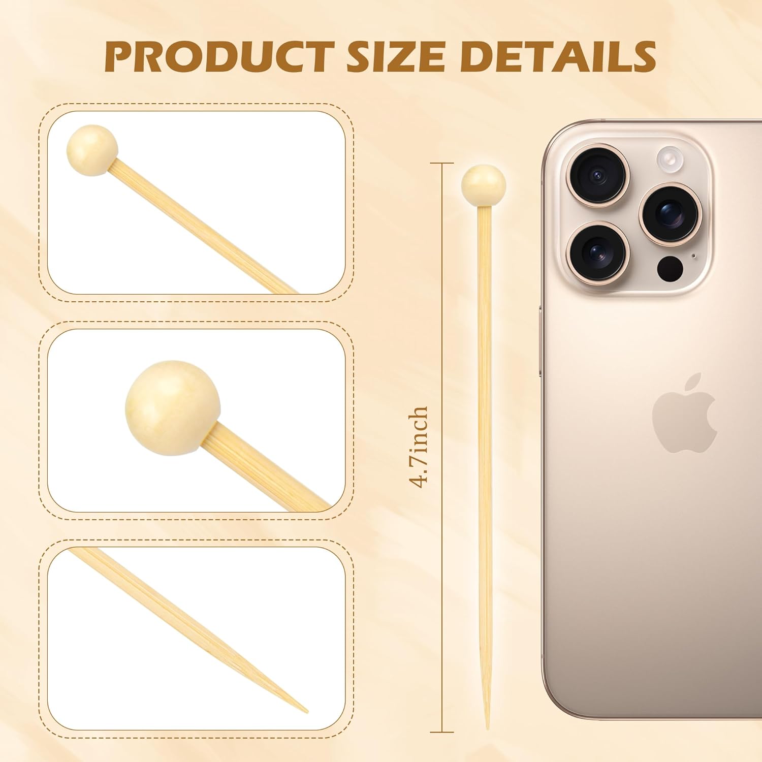 300Pcs Fancy Toothpicks for Appetizers,4.7Inch Wooden Ball Cocktail Picks For Drinks,Bamboo Appetizer Skewers for Charcuterie Boards Accessories,Martini, Sandwich,Desserts,Fruit