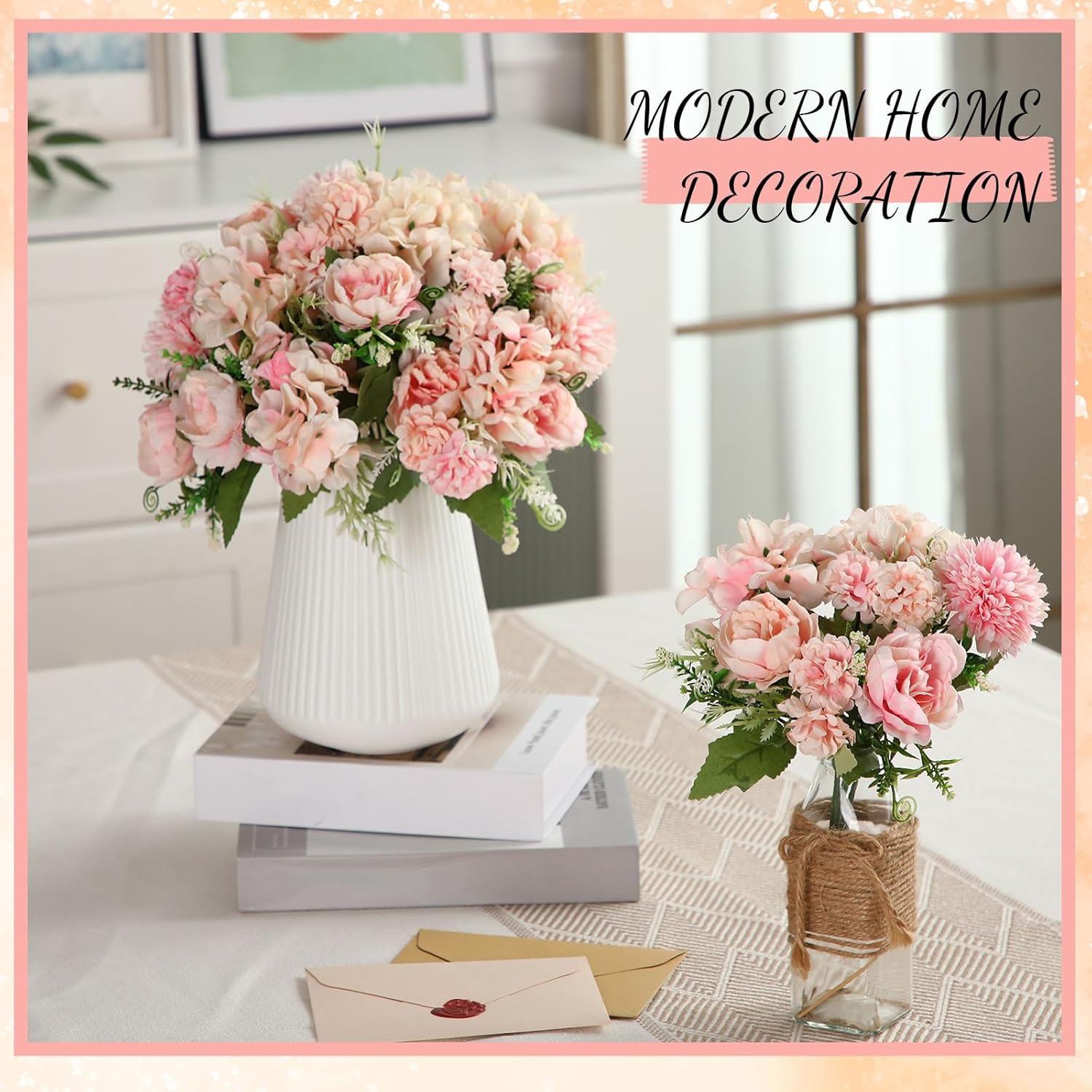 Tigeen Artificial Flowers Artificial Peonies Silk Flowers Faux Peony Fake Peony Silk Hydrangea Bouquet for Wedding Table Centerpiece Floral Vase Decor(Pink,24 Bundles)