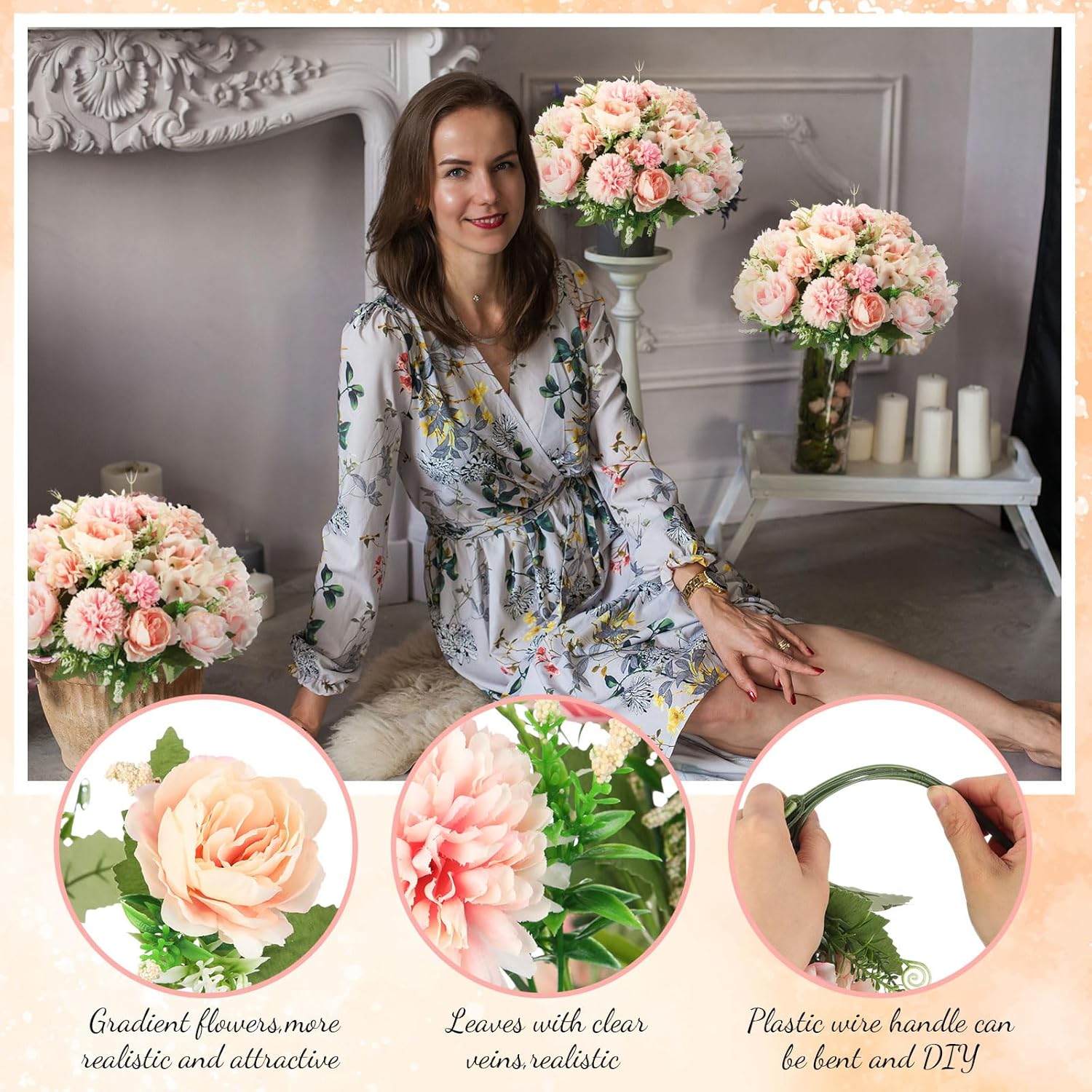 - Attractive Appearance: the fake flowers bouquet is shaped with pink peonies, embellished with green leaves, vivid and beautiful, designed with 7 flower heads as a bundle, including hydrangea, peony and more, bushy and vibrant, which will be favored by most people