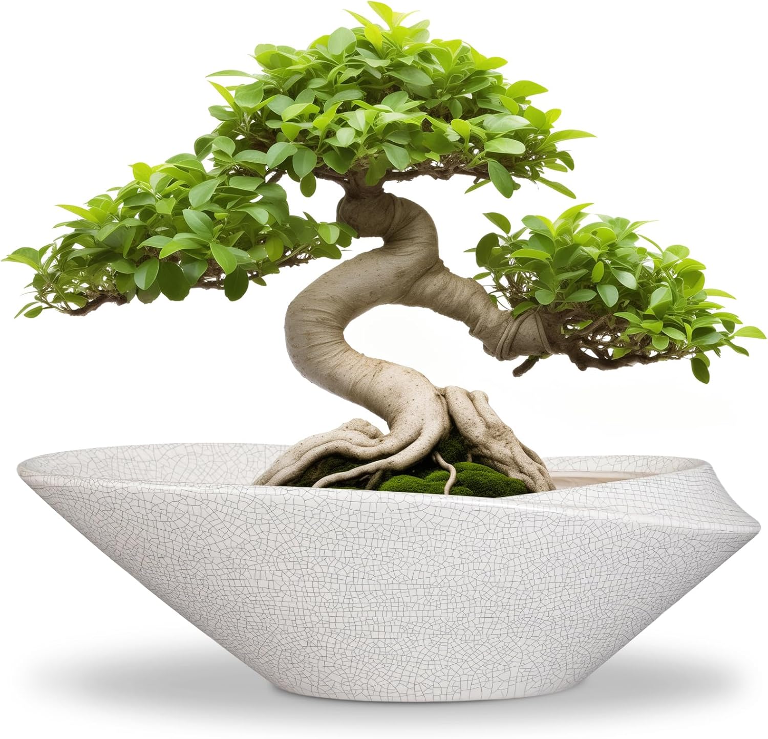 - Elegant and Durable Bonsai Pots: These ceramic pots for plants are made of premium quality ceramics fired at high temperatures, with black ice cracks and a glossy glaze effect on the surface, ensuring reliable performance. This ceramic plant pots is not easily deformed or damaged (NOTED: ONLY CERAMIC PLANTERS ARE SOLD, DO NOT INCLUDE ANY PLANTS!)