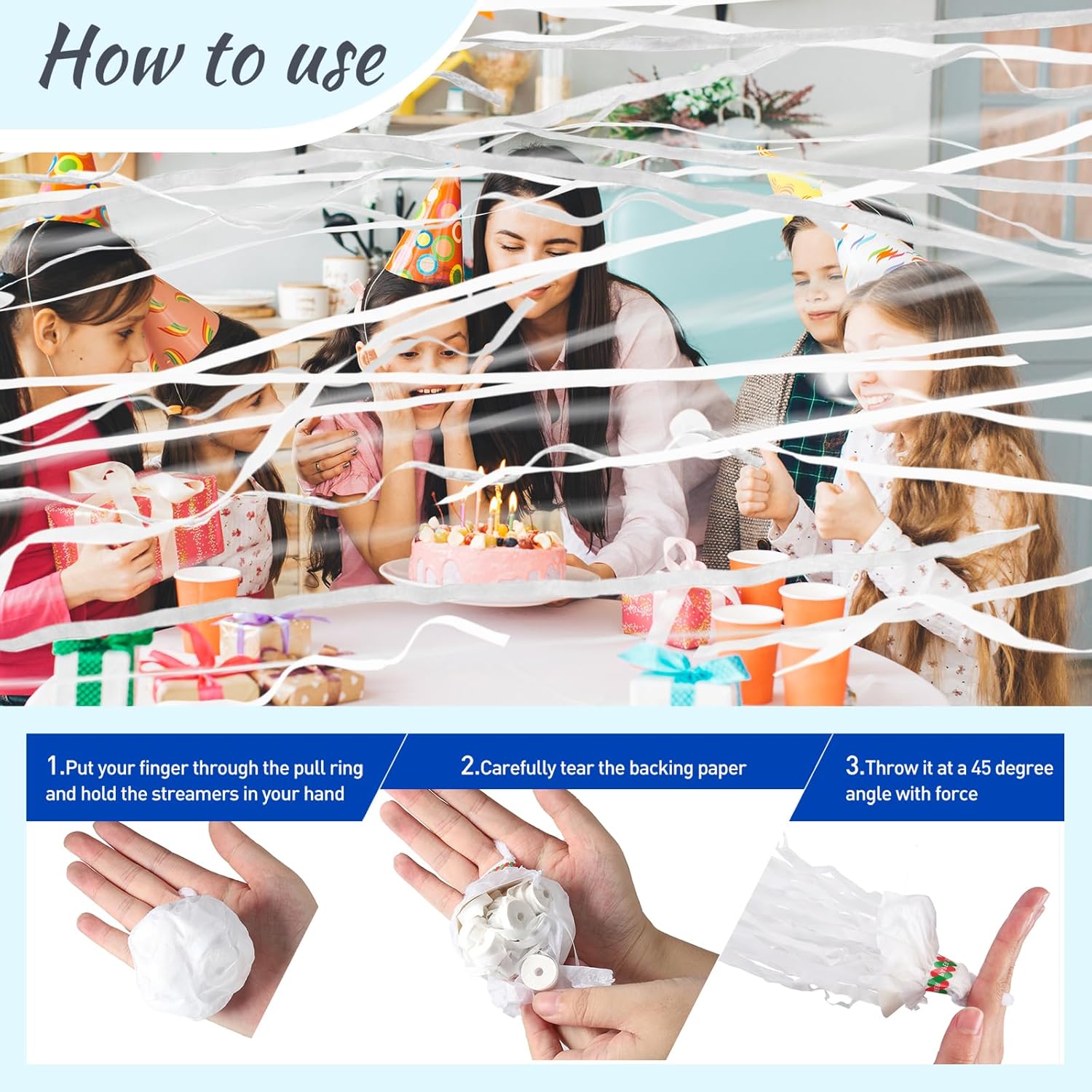 No Mess Streamers 100pack, White Confetti Poppers,Hand Throw Party Poppers No Mess for Birthday, Graduation, Wedding Send Off, Engagement Party Favors(White 100Pack)