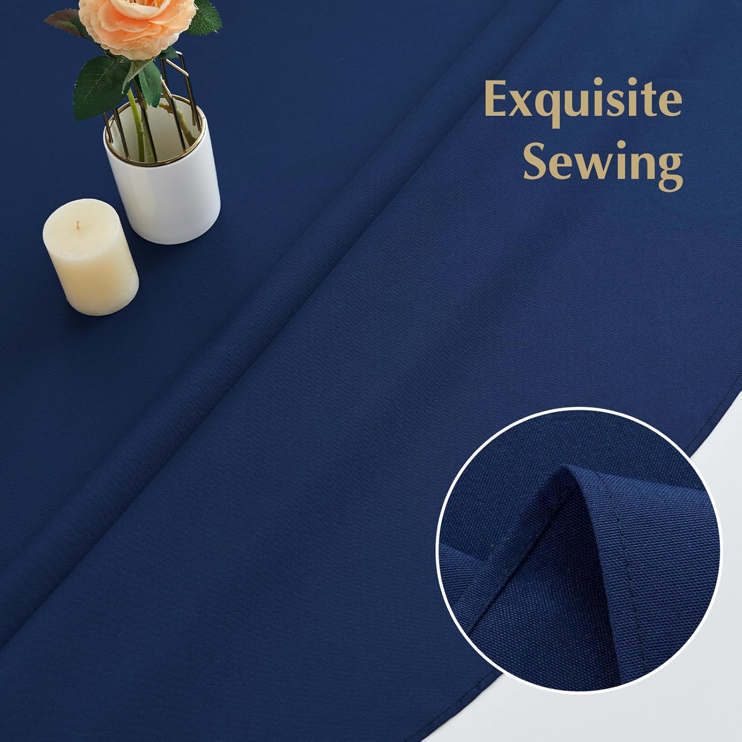 - Tablecloth Material: These solid navy blue tablecloths are made of polyester, which makes them soft, sturdy and stain resistant. Our tablecloths, our heavy duty round tablecloths are washable, scratch-resistant, not easily broken, and long-lasting