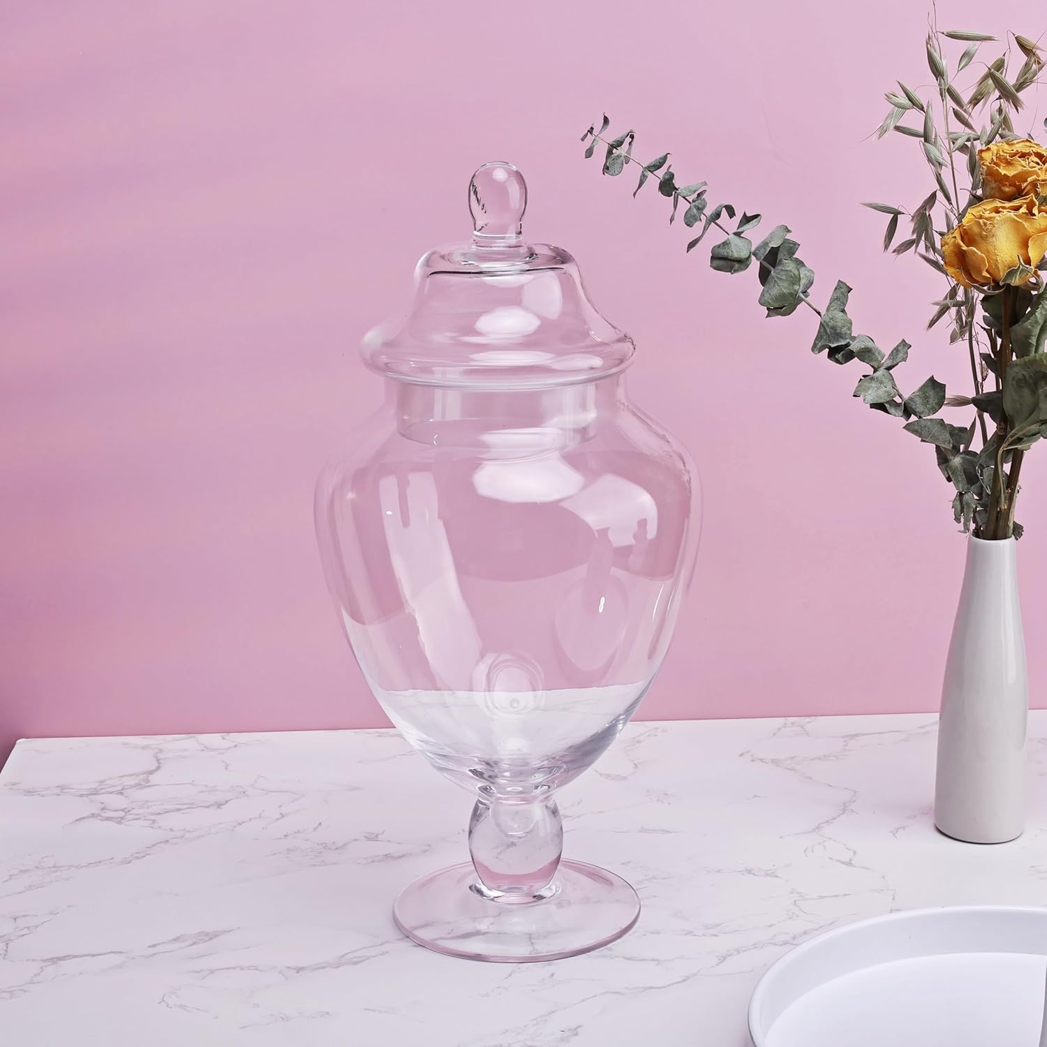 Glass Apothecary Jars with Lid, Clear Glass Candy Jar for Candy Buffet, Decorative Glass Jar for Party, Wedding and Home Decor, Classic Glass Candy Canister (Height: 12.6", Diameter: 6.5")