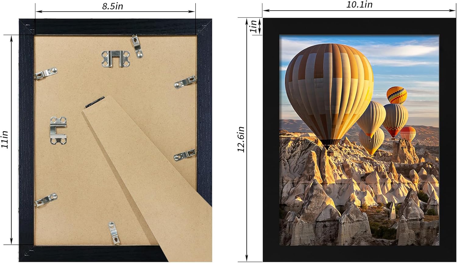 - Multi Frames Collage Set: Includes 4 frames in the same size. Perfectly fits 8.5x11 inch pictures without mat. The frame opening display size is 0.5 inches smaller than the photo size for secure mounting.