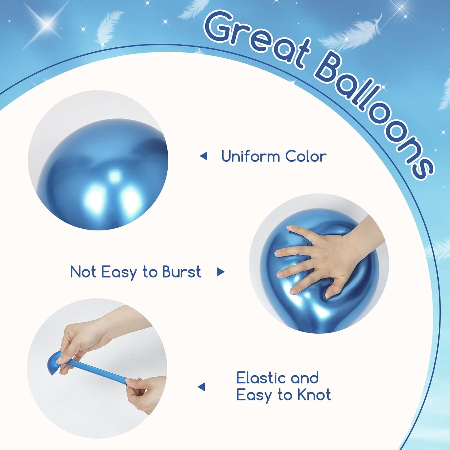 • What You Will Get: The package includes 12inch pearl blue balloonsx15, 12inch pastel blue balloonsx10, 12inch pearl light blue balloonsx10, 12inch white balloonsx15, 12inch blue confetti balloonsx10, glue dotsx20, blue ribbonx1