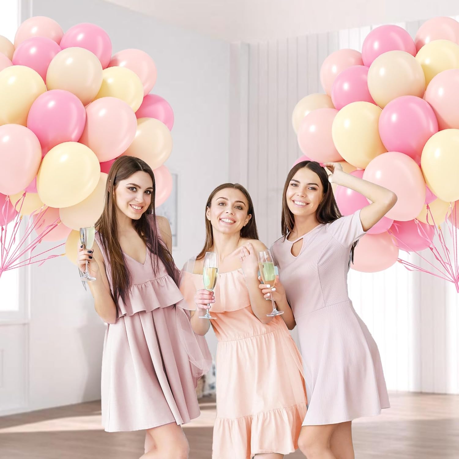 • What You Will Get: The package includes 12inch pink balloonsx20, 12inch light pink balloonsx20, 12inch pastel yellow balloonsx10, 12inch sand white balloonsx10, glue dotsx20, pink ribbonx1