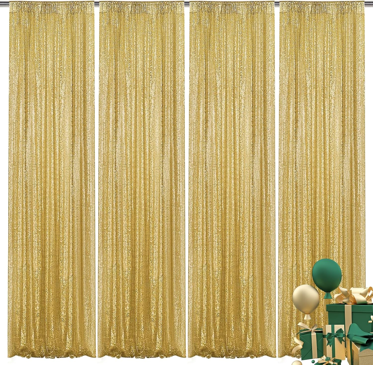 Gold Sequin Backdrop Curtain 4 Pieces 2FTx8FT Glitter Photography Backdrop for Party Wedding Birthday Christmas Decorations