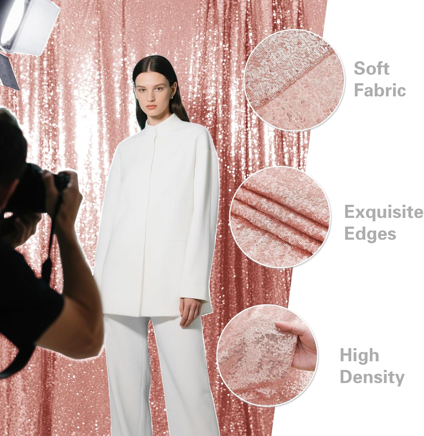 - Durable Material: The sequin backdrop is made of 3MM round density sequins with mesh fabric backing. All sides are well folded and sequins are not easy to drop which can be reused.