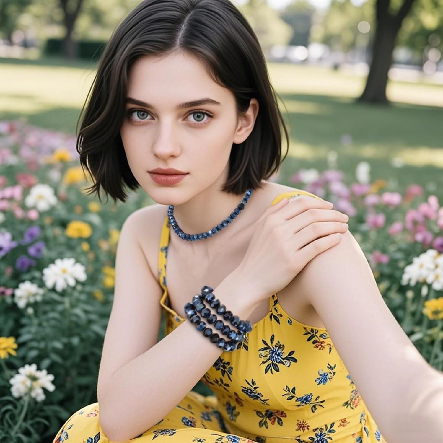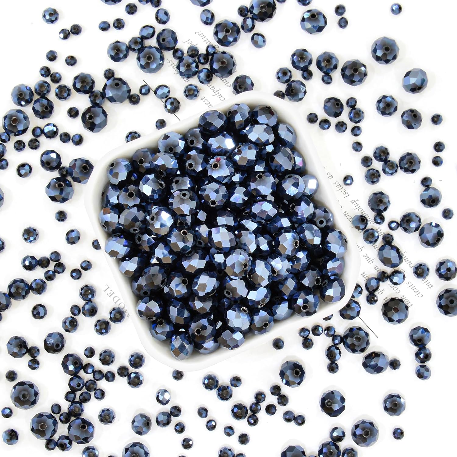220Pcs 10mm Crystal Glass Beads for Jewelry Making Beads for Bracelets Necklace Pendants Making Supplies(Navy Blue)
