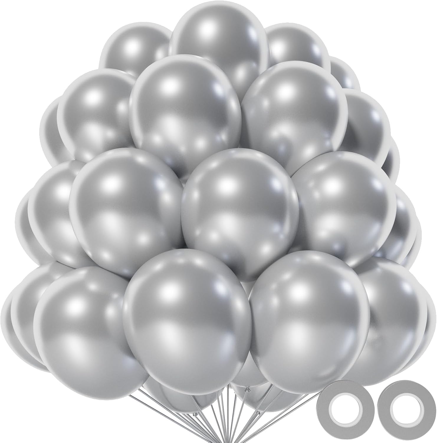 - 110-Count 12" Metallic Silver Latex Balloons: Premium bulk pack of 110 dazzling 12-inch balloons—perfect for New Year’s Eve parties, futuristic weddings, or tech-themed brand launches with sleek, mirror-like shine.