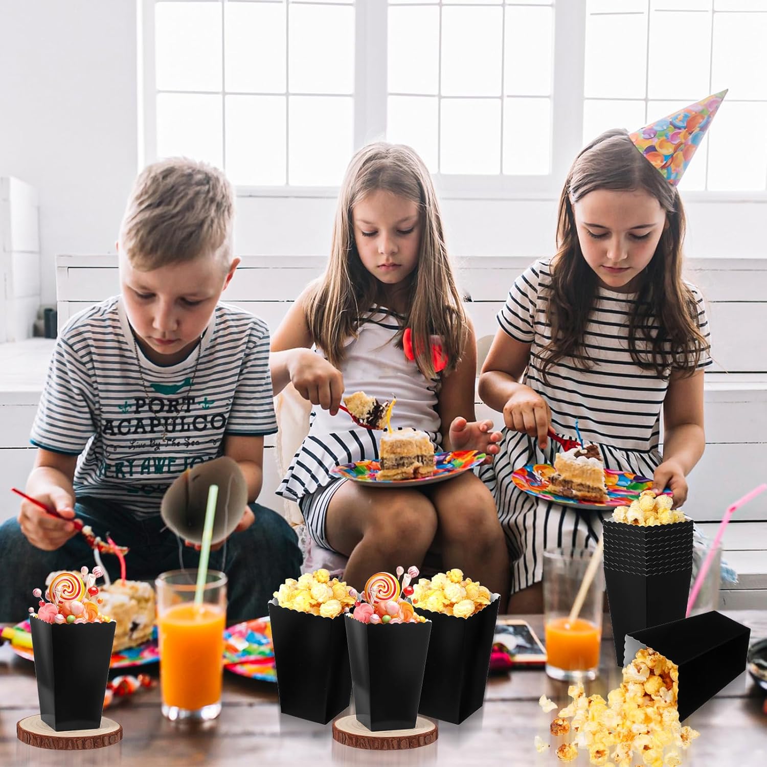 200 Pcs Popcorn Boxes, Mini Paper Popcorn Box, Cardboard Popcorn Container for Party, Disposable Snack Candy Popcorn Bags, Popcorn Holder for Birthday Wedding Decoration, 2 x 4.5 x 2.8 Inch (Black)