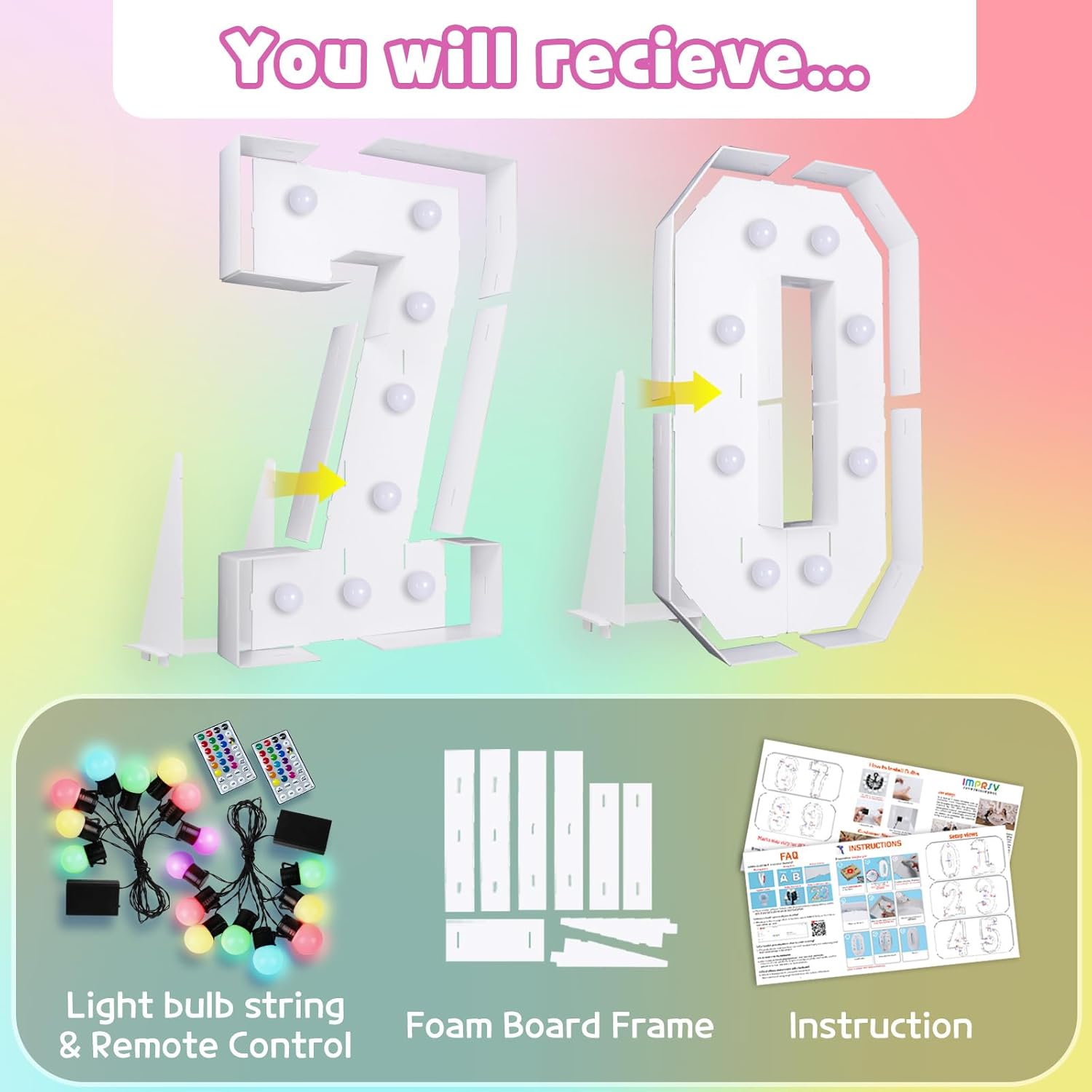 Marquee Numbers 70th-Birthday Decoration: Colorful 3FT Large Light Up 70 Year Old Birthday Decorations Anniversary Backdrop for Boys Girls Cardboard Sign 18 Colors Number 70 Mosaic Balloon Frame