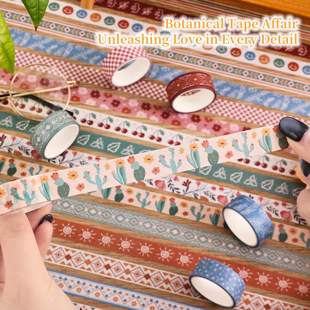 20 Rolls Bohemia Theme Washi Tape Set,Writable Decorative Tapes for Scrapbooking, Bible Journaling, Bullet Journaling, 0.6"x79" per Roll