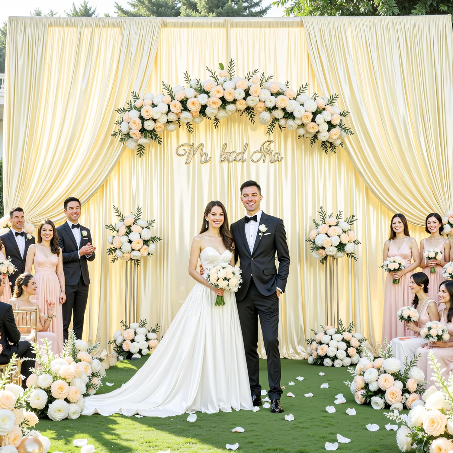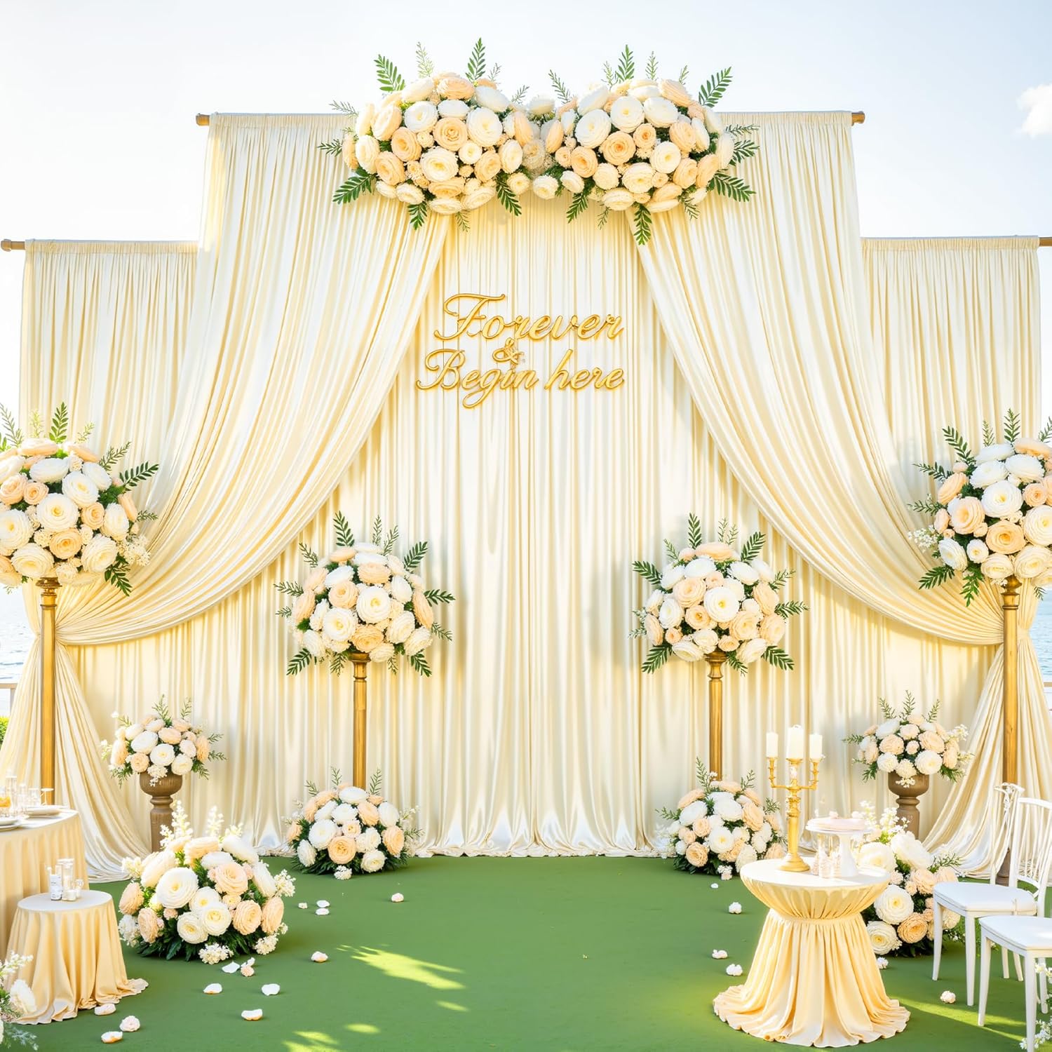 - 10X10 Champagne Backdrop Wide Compatibility:The champagne Shimmer curtain backdrop is suitable for weddings, baby showers, birthday parties,Photography, anniversaries, graduations, home decor,also can be used as a live video background, selfie wall, or creative curtains.The backdrop curtains match with balloons, banners,photo props,flower and other party decorations will make the scene more beautiful and elegant.