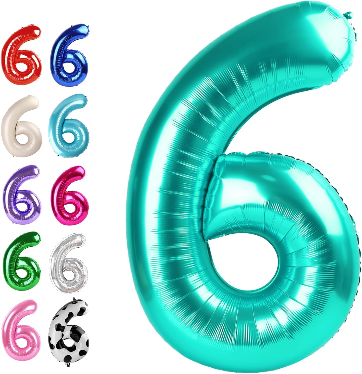 - 1.Noble Romantic Teal Blue Number Balloons:You will receive an uninflated 40 inch teal blue number 6 balloon.Balloons are always the best statement of romance surprise.Big six balloon symbolize eternal magical, adding glamour to teal blue birthday parties. Elegant teal blue and huge size make teal blue number 6 balloon a highlight of special parties.Choose one or more numbers from 0-9 number balloon,and use 6 16 26 36 46 56 60 61 62 63 66 76 86 96 birthday balloons to create a lively party!