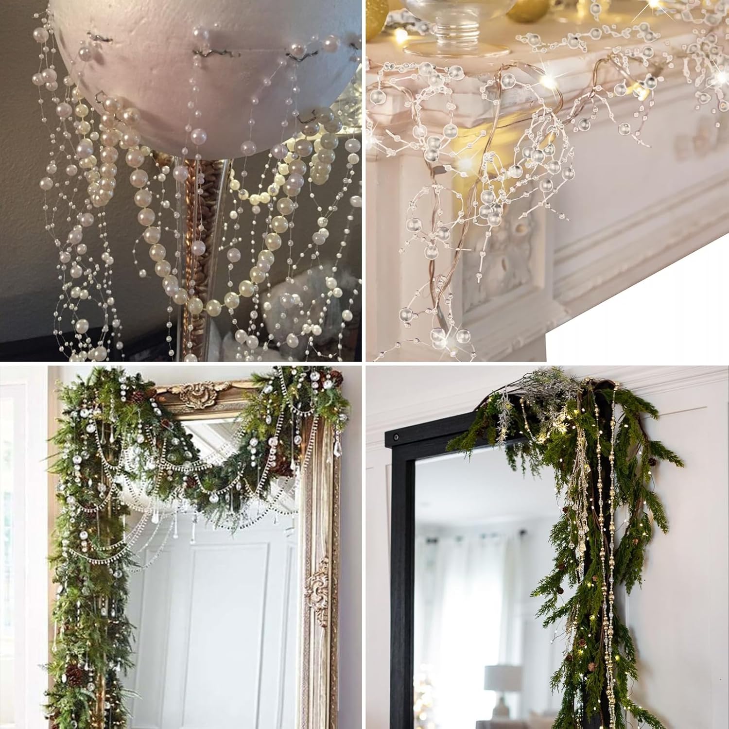 - 【98FT Pearl Bead String】The pearls garland string is 98 feet( 30 meters) of each roll spool, it can be cut easily with scissors to desired length without falling apart.