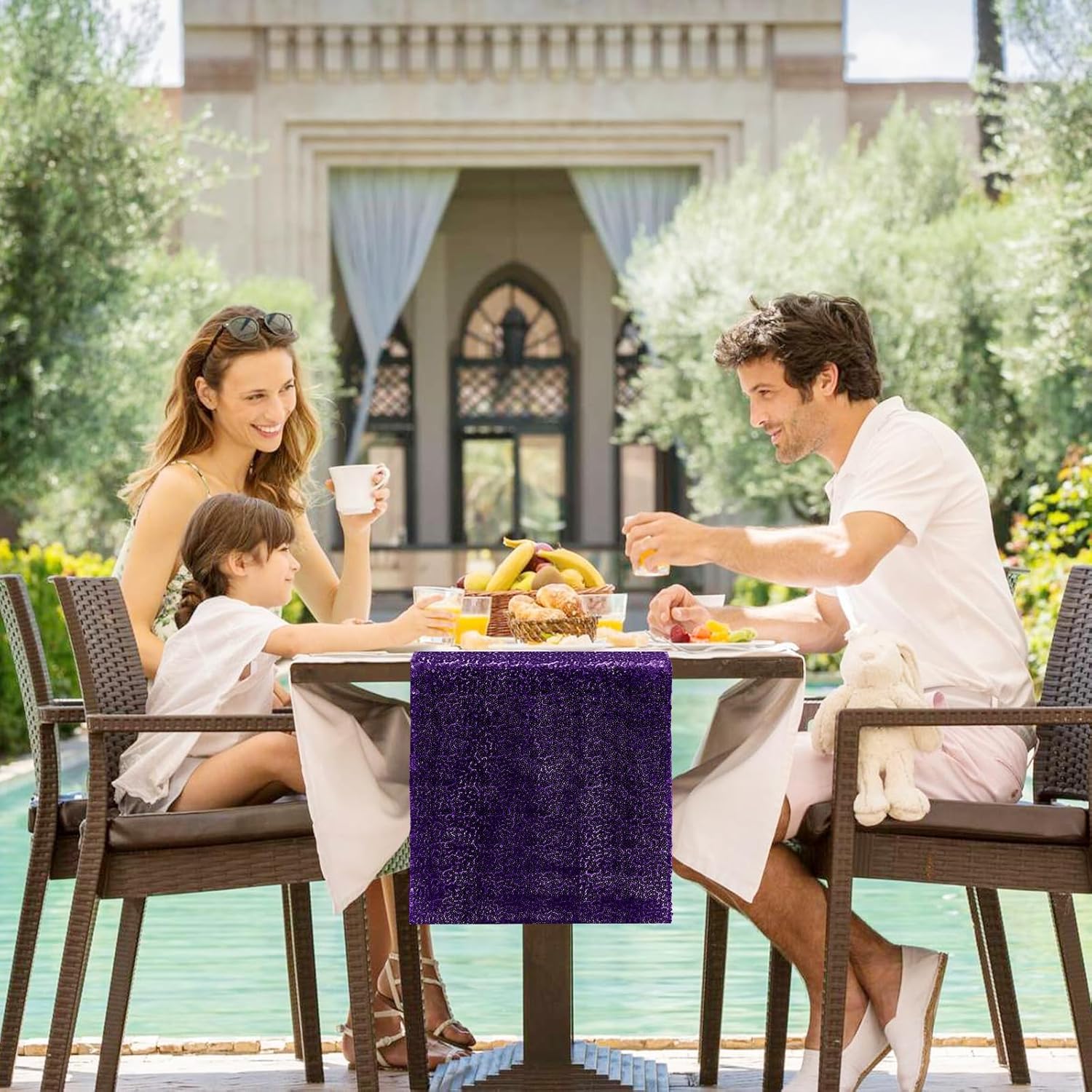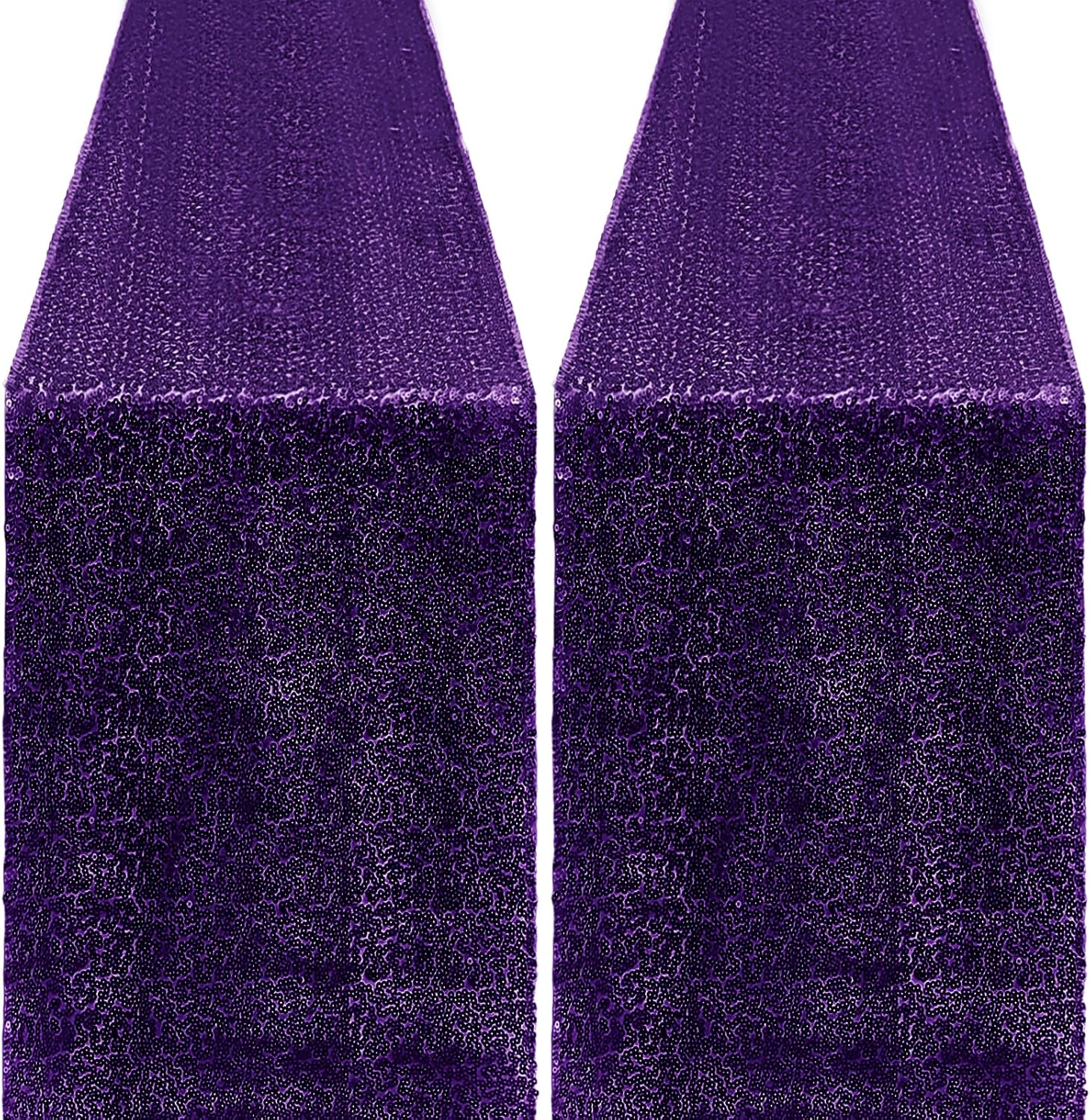 2 Packs 12 x 72 inches Sequin Table Runner, Purple Glitter Table Runner for Birthday Party Supplies Wedding Engagement Baby Shower Holiday Celebration Event Decorations