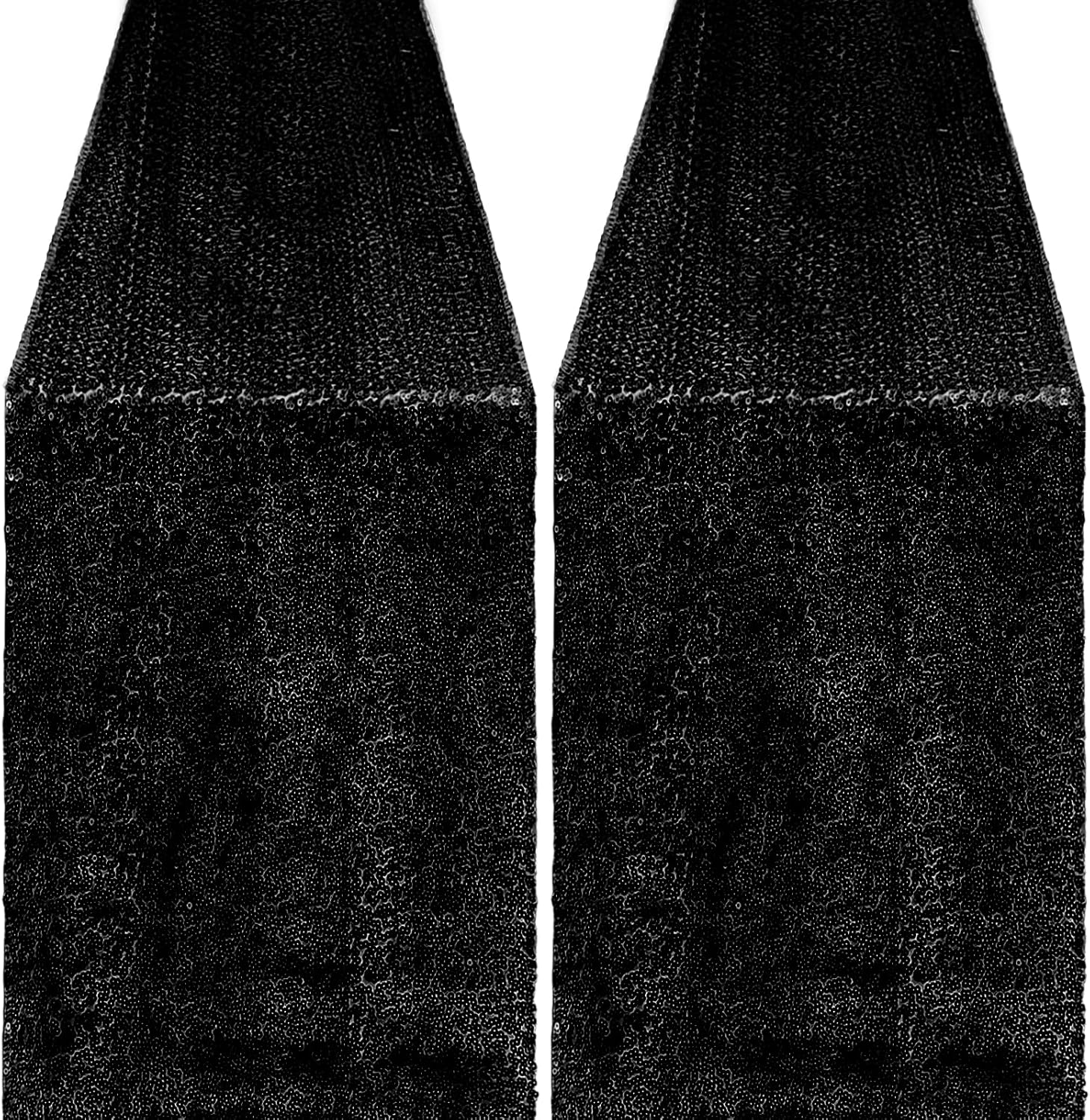 2 Packs 12 x 72 inches Sequin Table Runner, Black Glitter Table Runner for Birthday Party Supplies Wedding Engagement Baby Shower Holiday Celebration Event Decorations