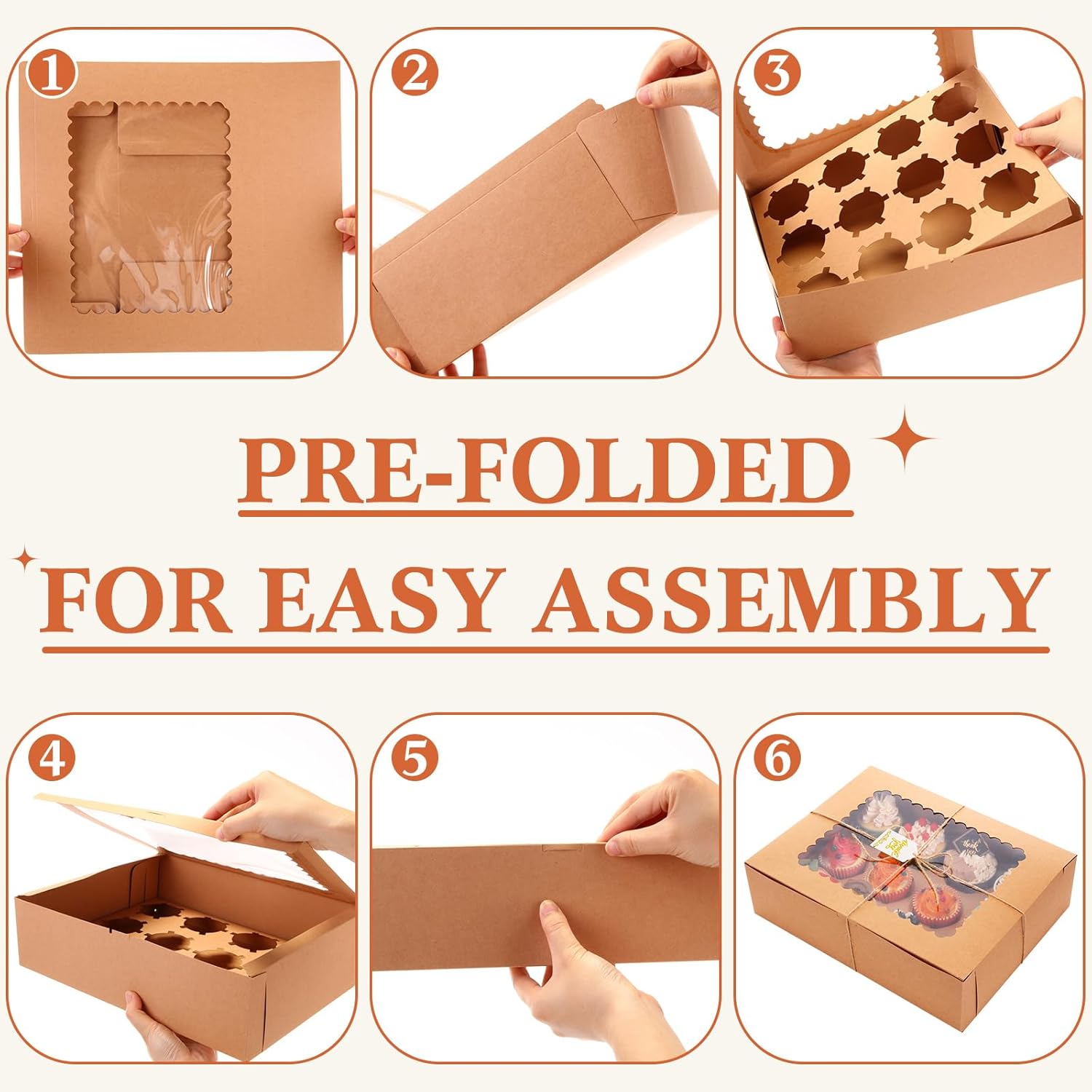 - Suitable Size: the assembled cupcake box measures 12.8 x 9.8 x 3.6 inches, deep enough to hold cupcakes without messing up the frosting, and easy to assemble and store, ideal tool for carrying desserts whether it's an outdoor picnic or an indoor party or takeout delivery