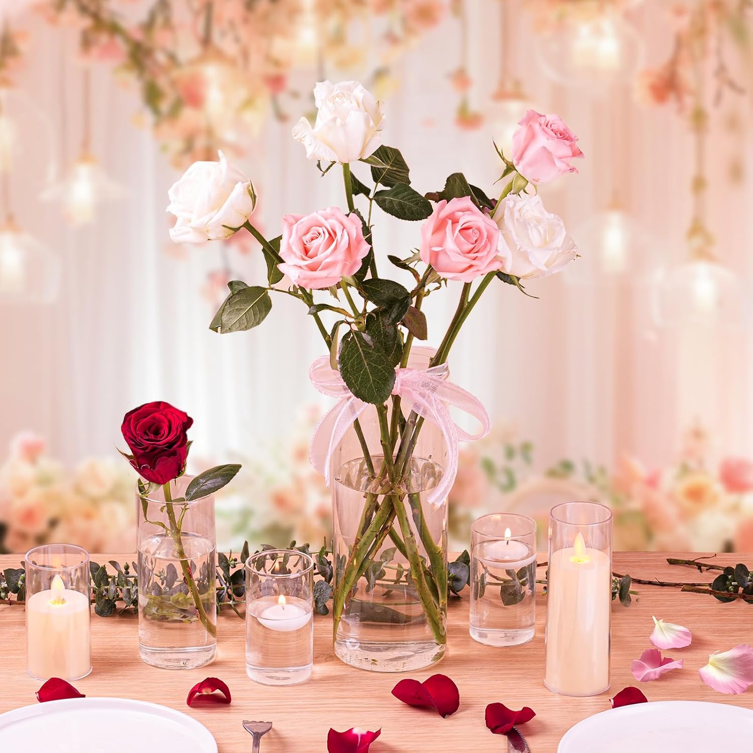 - A Great Gift:A thoughtful present for any occasion, this vases for centerpieces set of 12 is a practical yet elegant vase gift. As clear candle holder and bud vases in bulk, it offers great value for home decor lovers, newlyweds, or hosts who love entertaining. Packaged securely, these clear glass vase and cylinder vase sets arrive ready to gift for Mother’s Day, housewarmings, or anniversaries. Recipients can use them as flower vases, hurricane vases, or floating candle holders—making it a gift that combines beauty and functionality, perfect for anyone who appreciates quality glass vases for their home