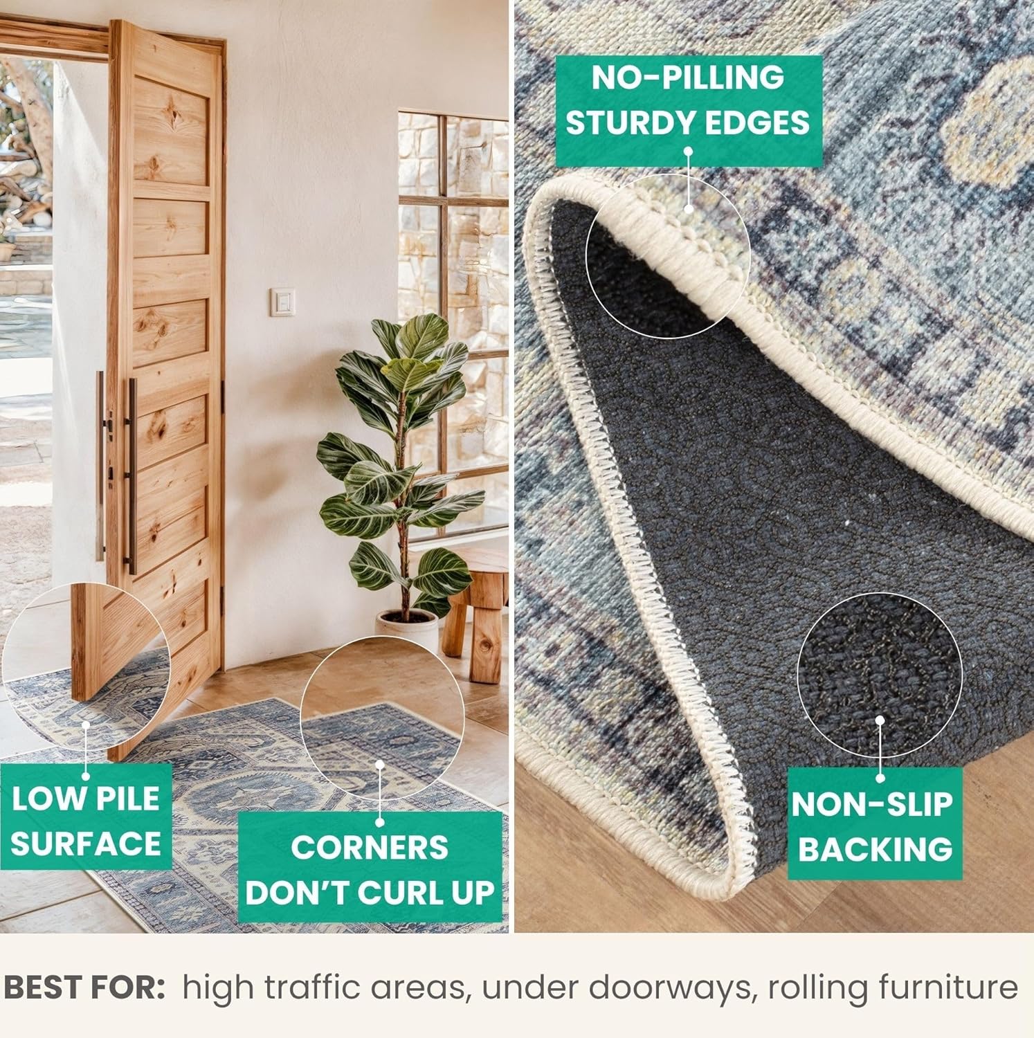 - EASY TO SETUP AND NON-SLIP: This one-piece machine washable rug with non-slip backing attached eliminates any additional setup. Simply unfold and lay flat upon arrival in the desired space. Non-slip backing prevents the rug from moving or sliding without the need for additional rug pad or grippers.