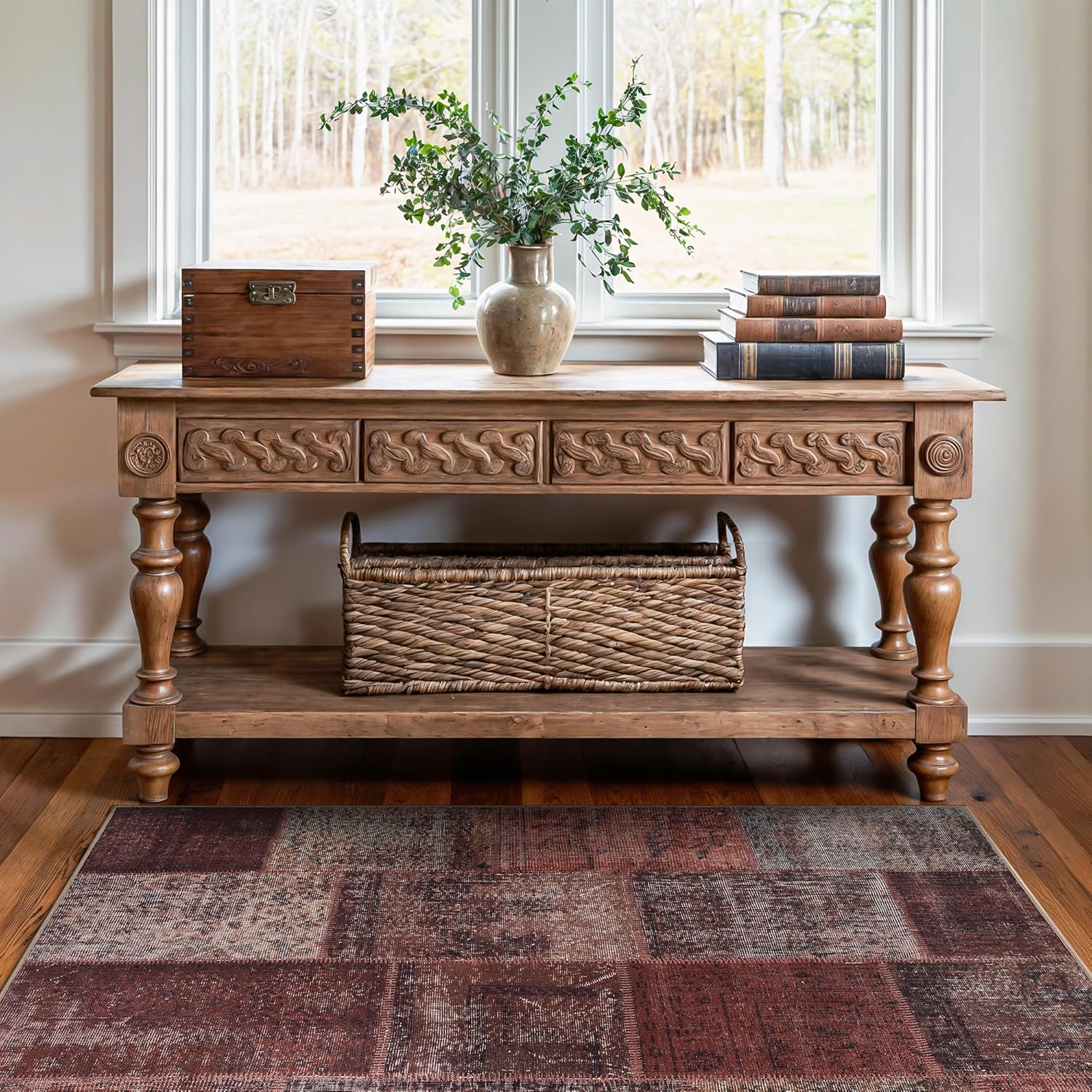 Bloom Rugs Washable Non-Slip 3' x 5' Rug - Red/Brown Traditional Patchwork Area Rug for Living Room, Bedroom, Dining Room, and Kitchen - Exact Size: 3' x 5'