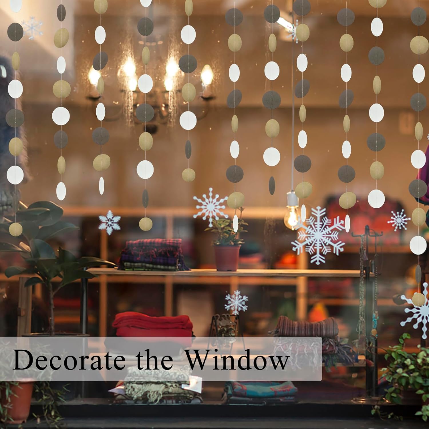 • HOW IT'S MADE - MerryNine Paper Garland is made of high quality double sided gold gittler paper and card stock circle polka dots that is sewn together with double sturdy thread, each thread is sewn with 40pcs dots, each end has plenty of extra thread to makes it easy to hang the garland