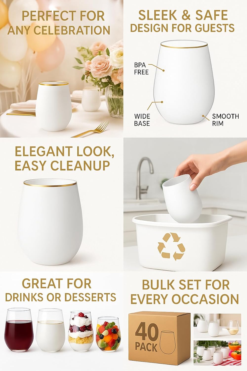- Bulk Set for Every Occasion: With 40 wine cups per pack, you’ll have plenty on hand for your next event, whether it's a formal party, backyard BBQ, or corporate happy hour.