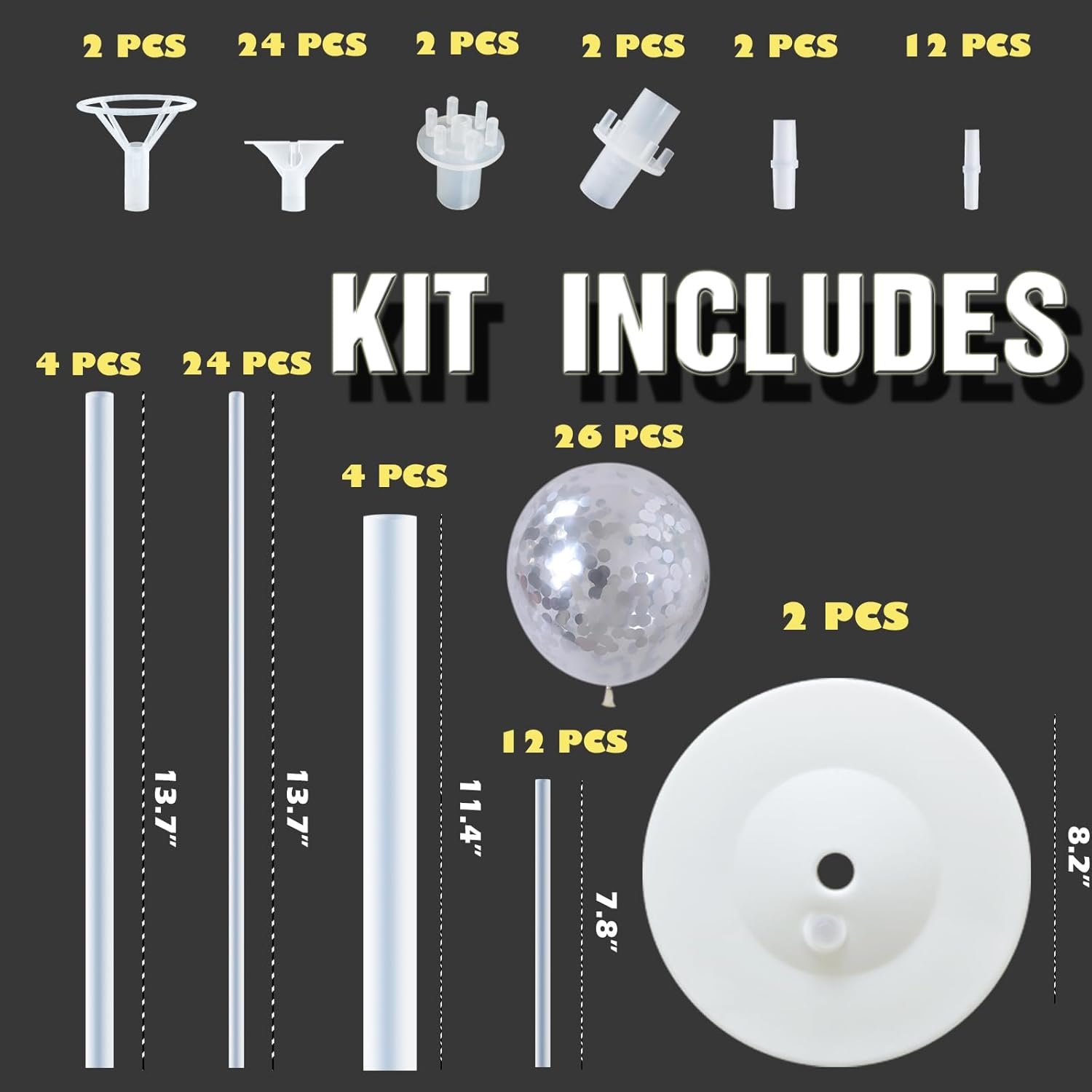 - â Party Upgrade - These latex balloons includes 26pcs , 2 Sets of Balloon Stand Kits, Includes 44 Unconnected Balloon Sticks, 24 Cups, 2 Big Cups, 4 of Which Are Tube Connectors, 12 Mini Union Joints,2 Union Joints,26pcs Balloons,2 Base.Each Balloon Stand Comes in 2 Different Height Sizes.Perfect Size for Table&Ground.