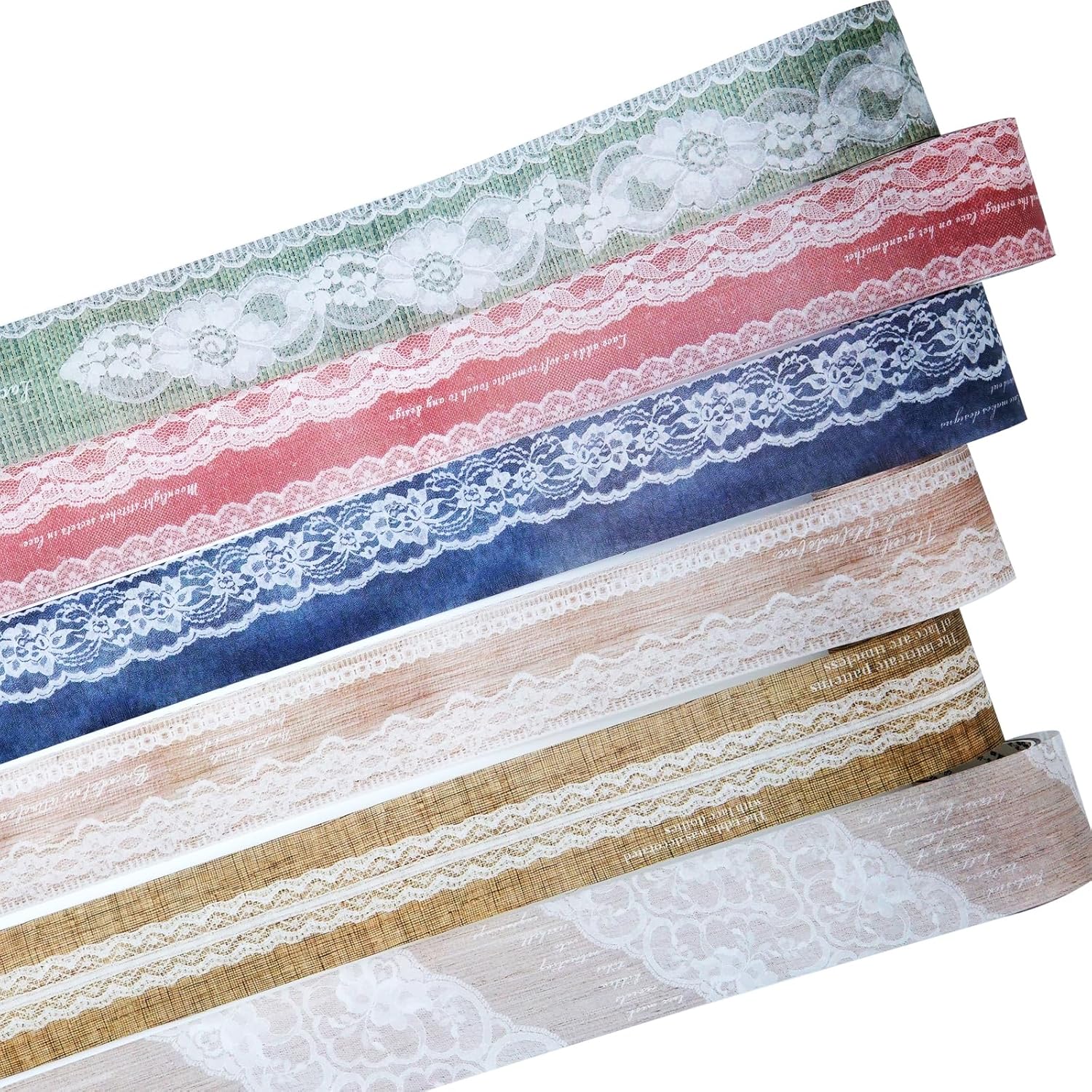 - Elegant Lace Designs: 6 rolls of 1.57in wide washi tape, each featuring a unique lace fabric pattern, bring a vintage and romantic touch to your scrapbooks, journals, and crafts