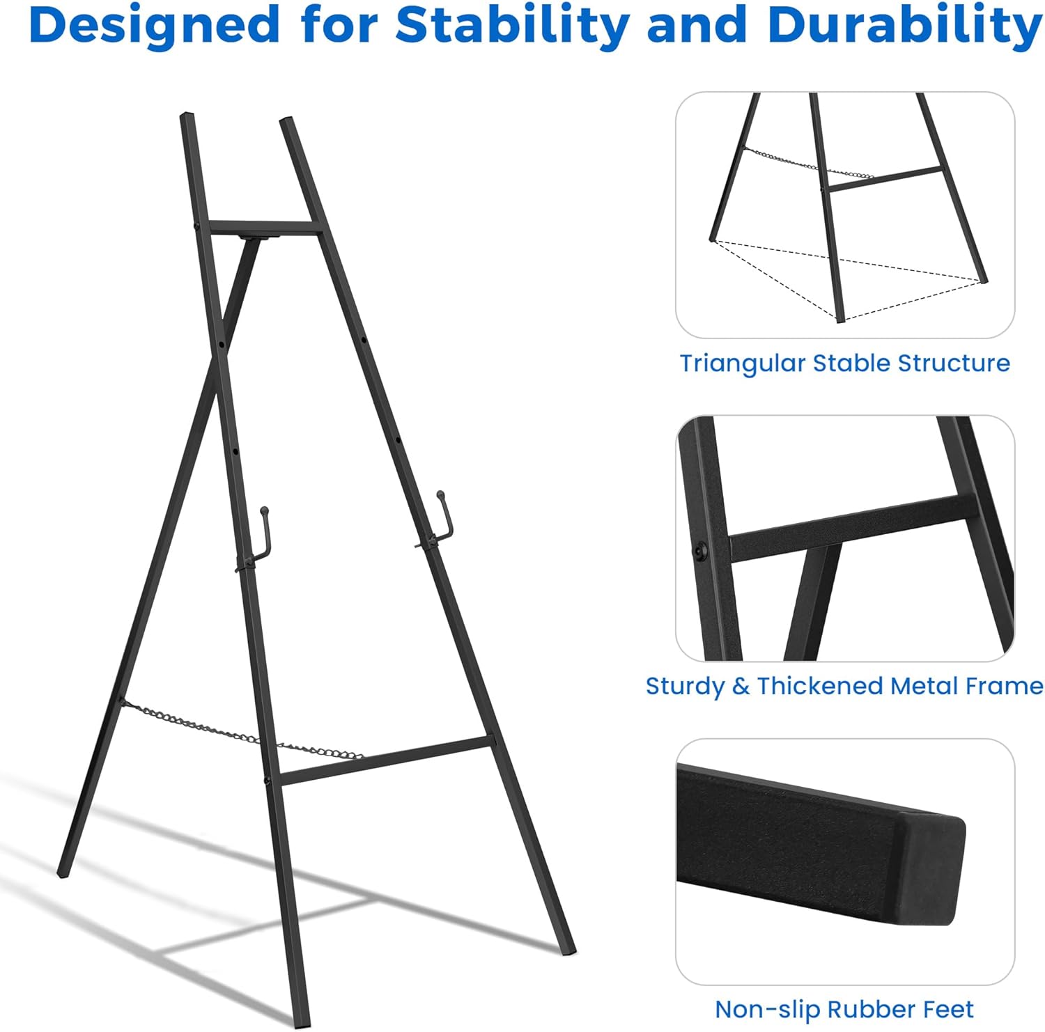 ARTASY 50" Black Easel Stand for Wedding Signs, Posters, Portable Artist Easel for Painting Canvas, Large Display Easel for Home and Office