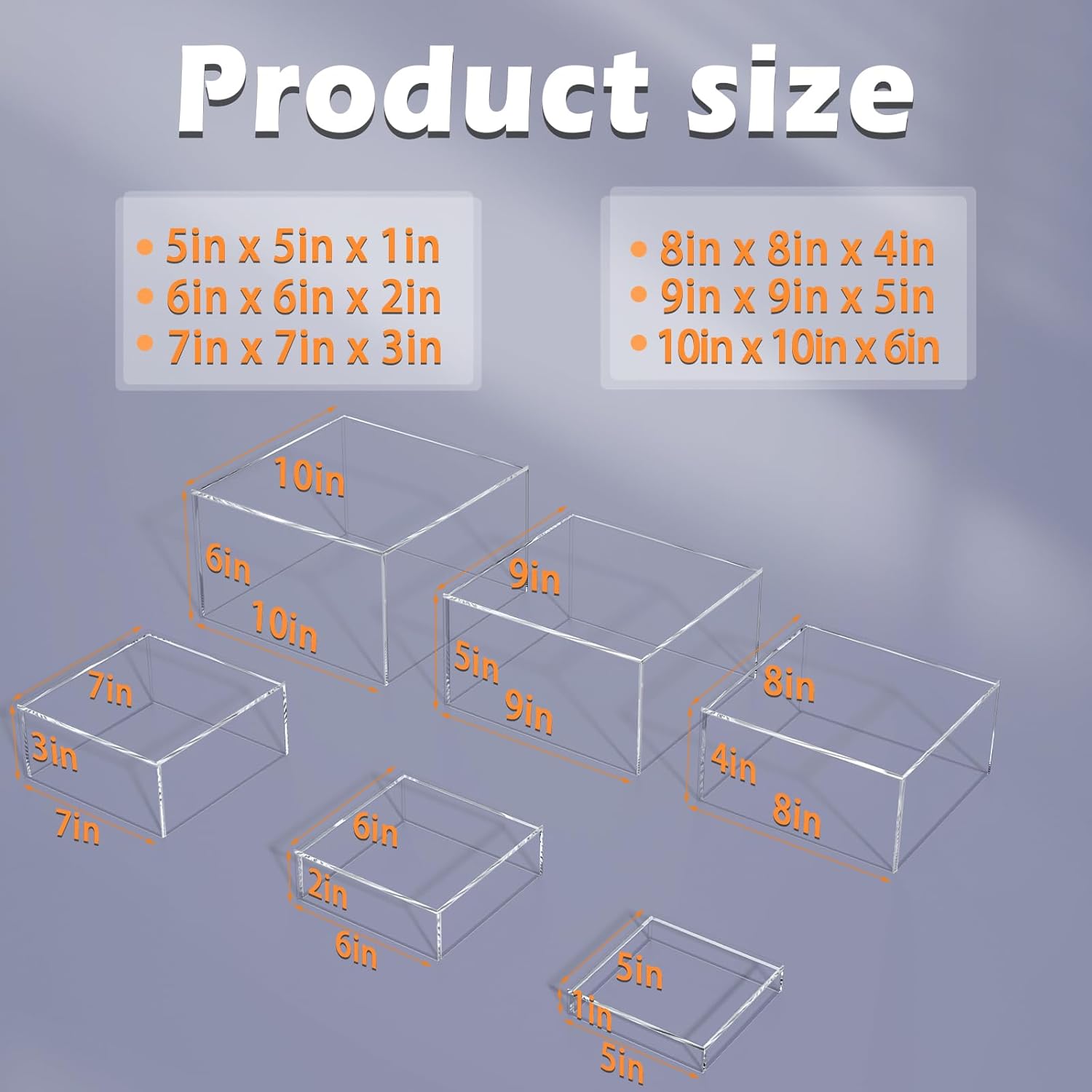 - 【Nesting Design & DIY Your Party】 The different size of acrylic cube box with hollow bottom that could be easy to nest and stack. You could DIY to display cakes, drinks and flowers at freedom with these different height and size of food risers for your party. It will definitely leave a deep impression for your family and friends