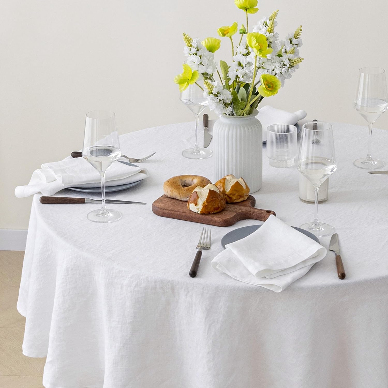 100% Pure French Linen Tablecloths,90Inches Round Table Clothes for Dining,Parties,Picnic,Events,Weddings and Restaurants (RO-White, Round - 90 Inch Dia)