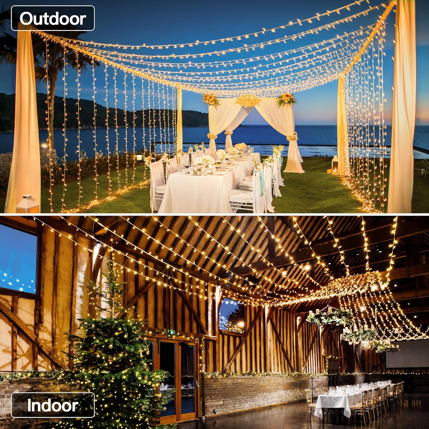 - Ultra Long 196 ft: 600 LEDs, plus a 10-foot extension cord! Perfect for indoor and outdoor use—decorate your wedding, patio, garden, Christmas tree, parties; Create a magical holiday atmosphere effortlessly