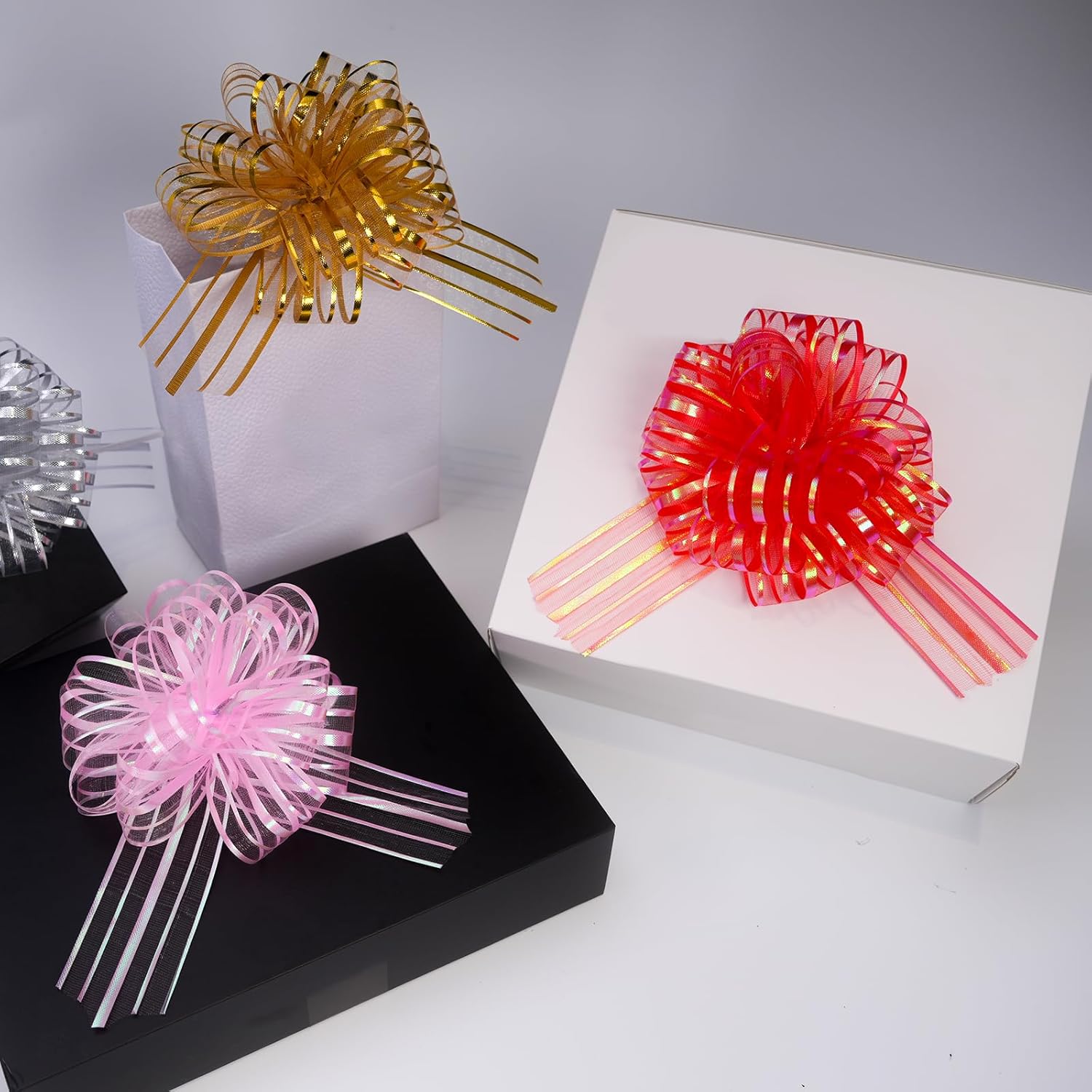 - Elegant Organza Material】 Crafted from lightweight, translucent organza, these pull bows create a shimmering and romantic look, perfect for weddings or gift wrapping that needs a touch of sophistication.