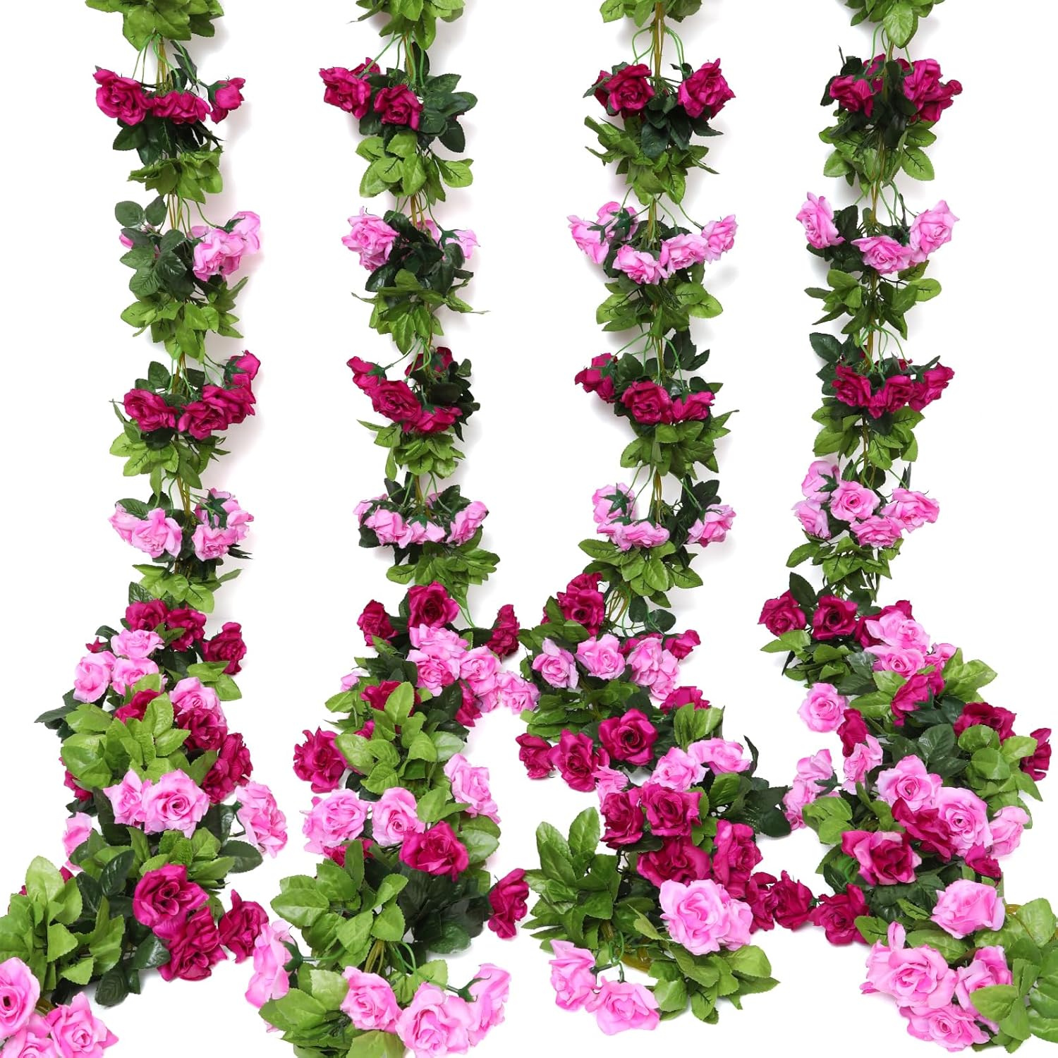 Floweroyal 4 Pack Artificial Flower Garlands 15.8FT Fake Rose Vines Silk Flowers Hanging Rose Ivy for Wedding Arch Party Home Garden Wall Decor (Fuchsia)