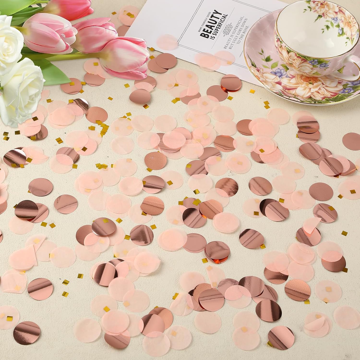 - Package Content: Rose gold tissue paper confetti, the size is 1 inch/2.5 cm. Beautiful colors can easily meet your decoration needs at large or small parties. You can also share these table confetti with friends and family, so that the joyful atmosphere can spread on more occasions and every celebration moment is full of color and vitality