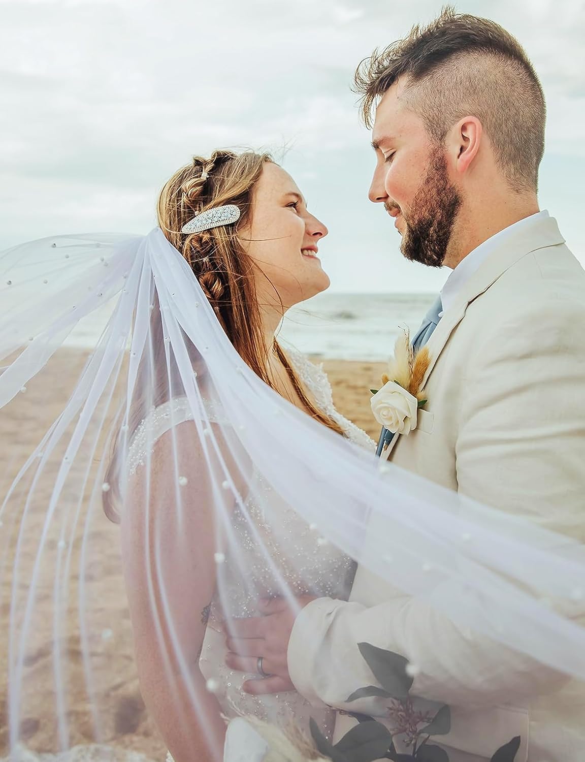 - Pearl Bridal Veil: These pearls add elegant sparkle to this monochrome veil, highlight the bride's elegant and charming temperament. Choose from three lengths: 39" (Fingertip), 79" (Chapel), or 118" (Cathedral)—all 59" wide for dramatic flow. Perfect for outdoor weddings, photo shoots, or grand cathedral ceremonies.