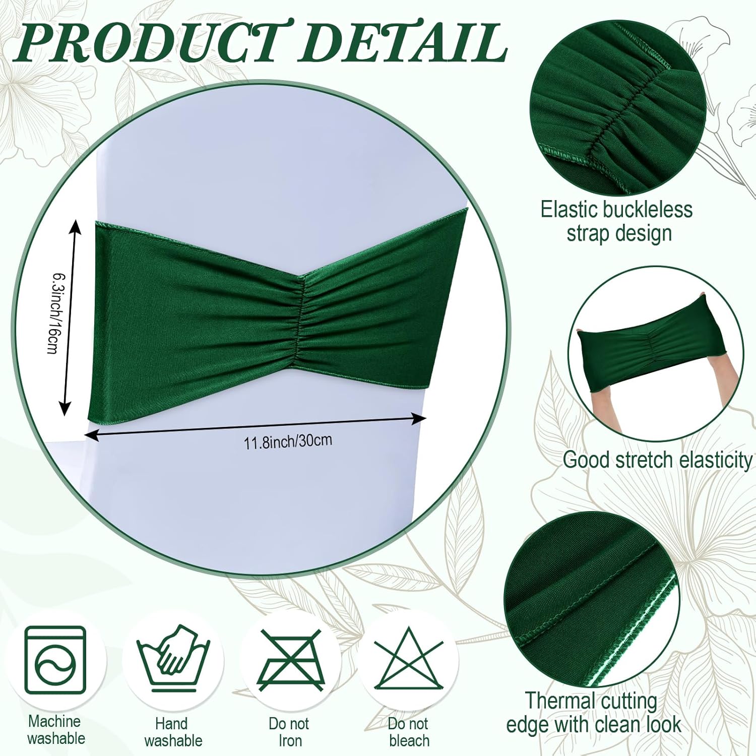 Moukeren 100 Pcs Spandex Chair Sashes Bows Bands Slider Sashes for Chair Covers Elastic Bands Ties Ribbon Decorations for Wedding Party Events Ceremony Birthday Banquet (Dark Green)