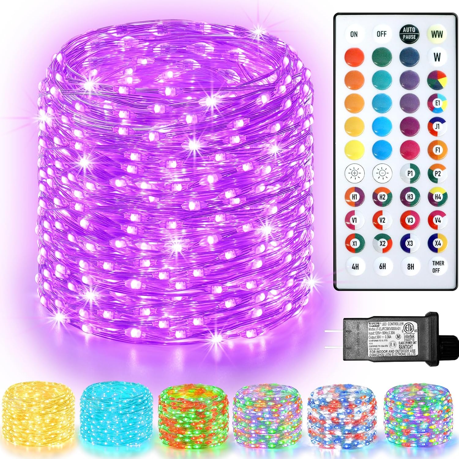 - 35 Colors Changing Fairy Lights: 66ft 200 LED RGB string lights silver wire with 17 base colors + 18 holiday themes colors ( βWβ button for cool white color / βWWβ button for warm white color ), dynamic effects, timer settings and remote control. Ideal for festive decor and ambient lighting