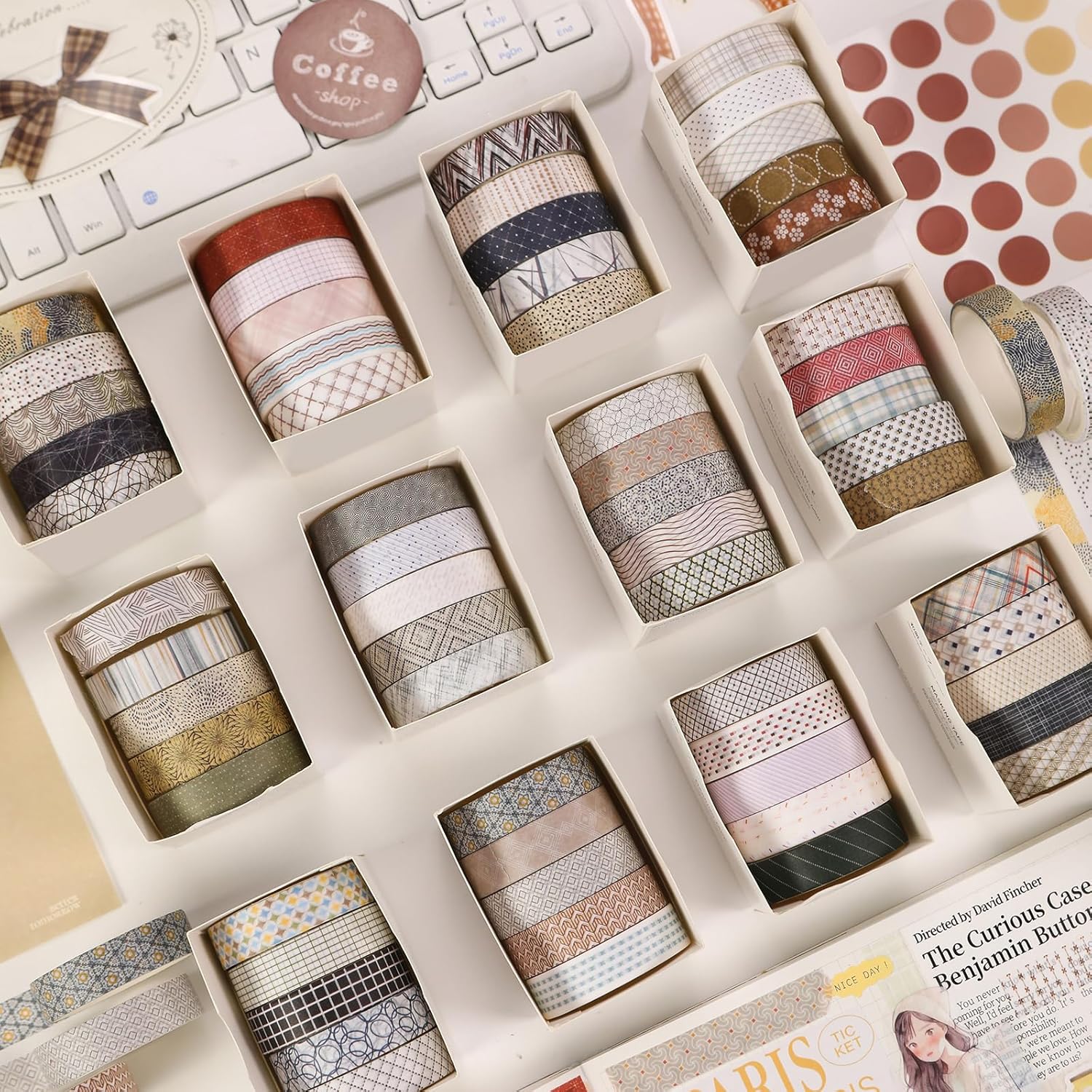 YUBBAEX 60 Rolls Value Washi Tape Pack Retro Arts Masking Tape Basic Patterns Decorative for DIY Crafts, Bullet Journal Supplies, Planners, Scrapbook, Card/Gift Wrapping (Basic Geometry)