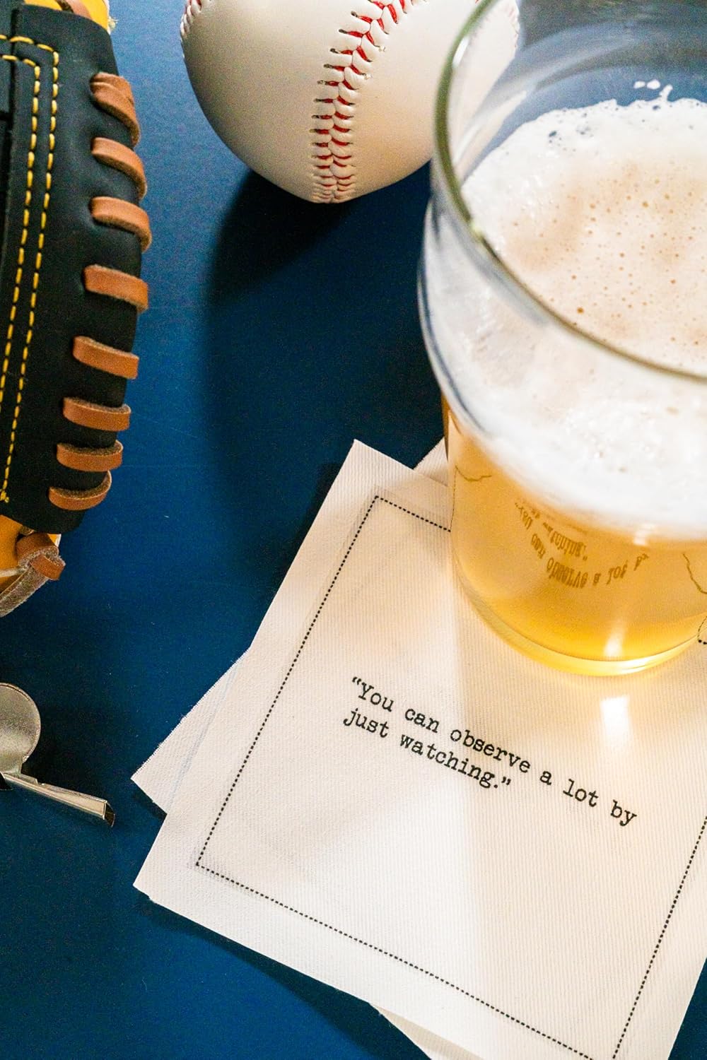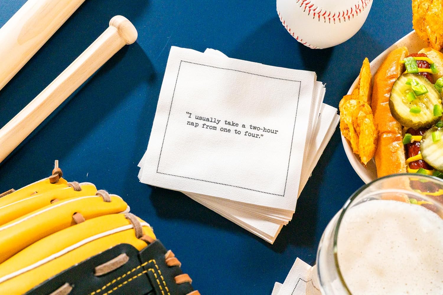 Five Star Napkins White Cocktail Napkins – 50 Luxury Cotton Disposable Cocktail Party Napkins with Quotes – 4.5" x 4.5" for Home Bars, Game Nights, Beverages, Birthdays, Weddings & Holidays