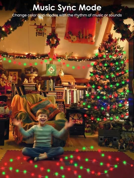 - Sync with Music: You can choose the color, brightness, mode or sensitivity of these led color changing string lights according to your need, our smart string lights change synchronously with the rhythm of the music. Whether you are having a party with friends or spending holidays at home with your family, these globe string lights indoor can be paired to create lively atmosphere.