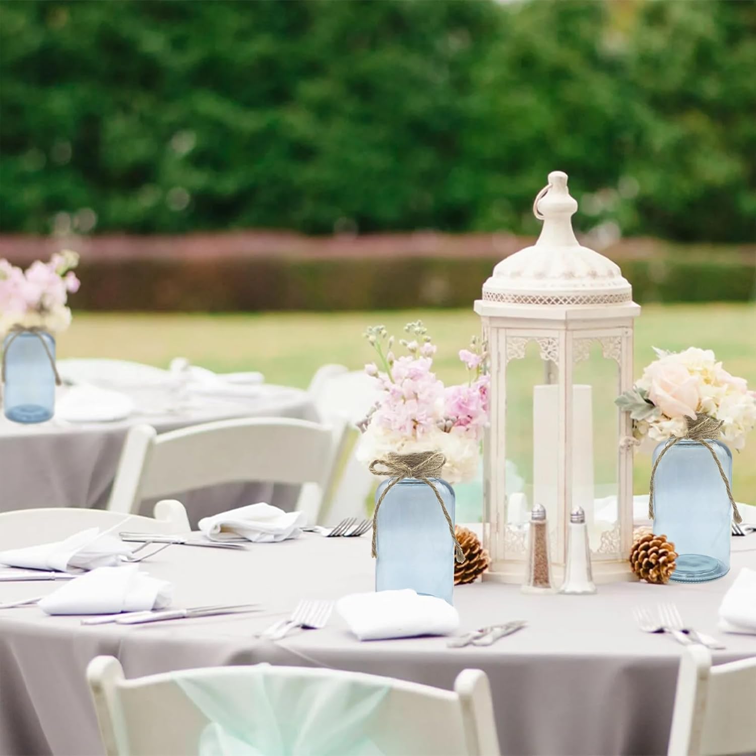 - 🏺 Commercial-Grade Bulk Vases:12-pack vintage glass centerpiece vases designed for weddings, banquets, and catering businesses. Clear mason jars offer reusable rustic charm for floral arrangements or candlelit tables