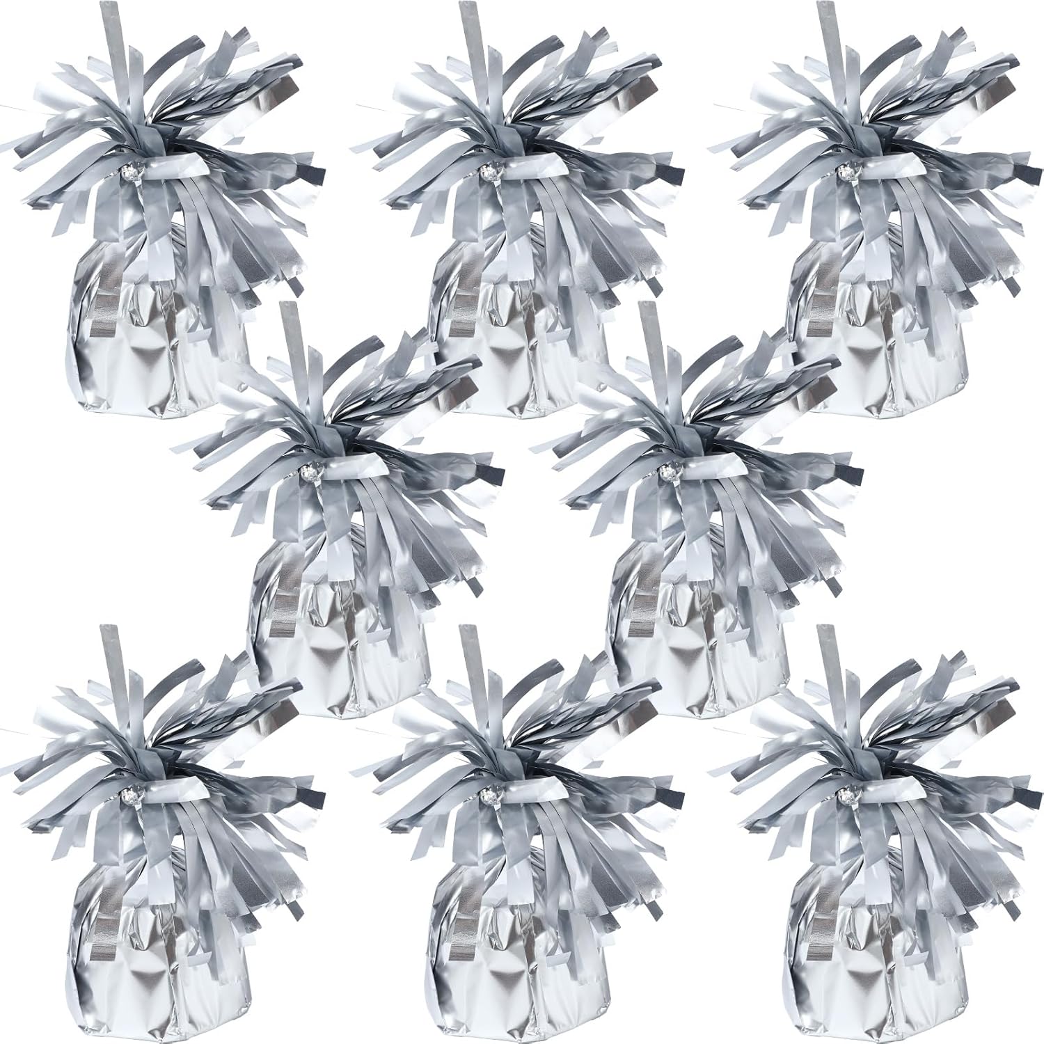 8 Pcs Silver Metallic Balloon Weights Holder Anchors Balloon Holder Weights for Helium Balloons Birthday Graduation Party Christmas Wedding Celebration Decoration (Silver)