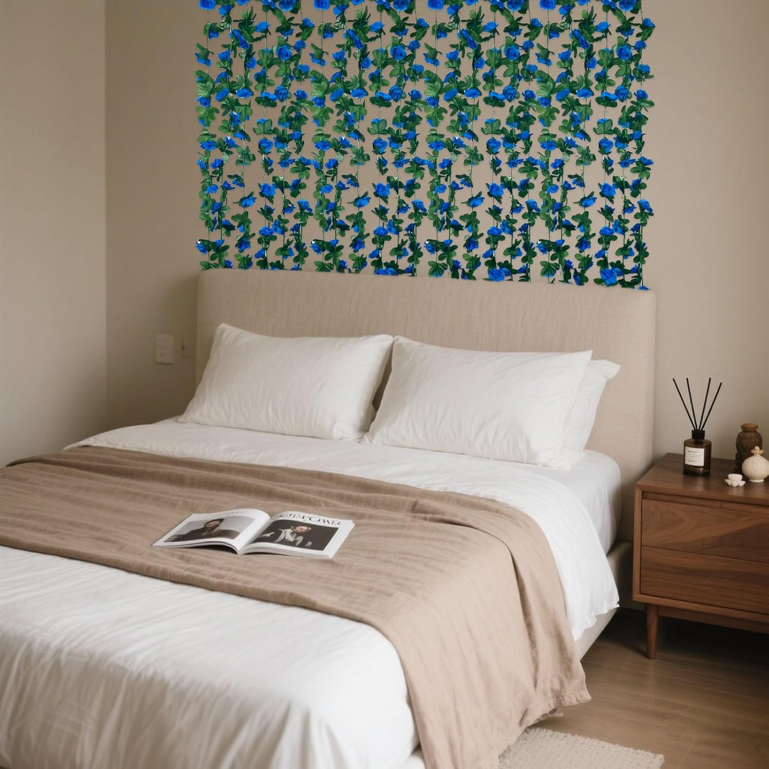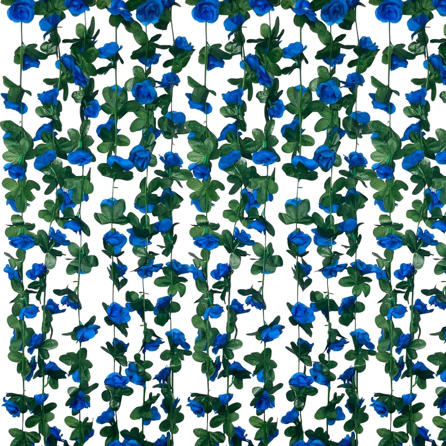 16Pcs 126Ft Royal Blue Rose Garland, Fake Rose Hanging Flowers, Artificial Flower Vine, Hanging Floral Vine Garland for Wedding, Birthday Party, Wall Arch, Halloween, Christmas Garden Backdrop Decor