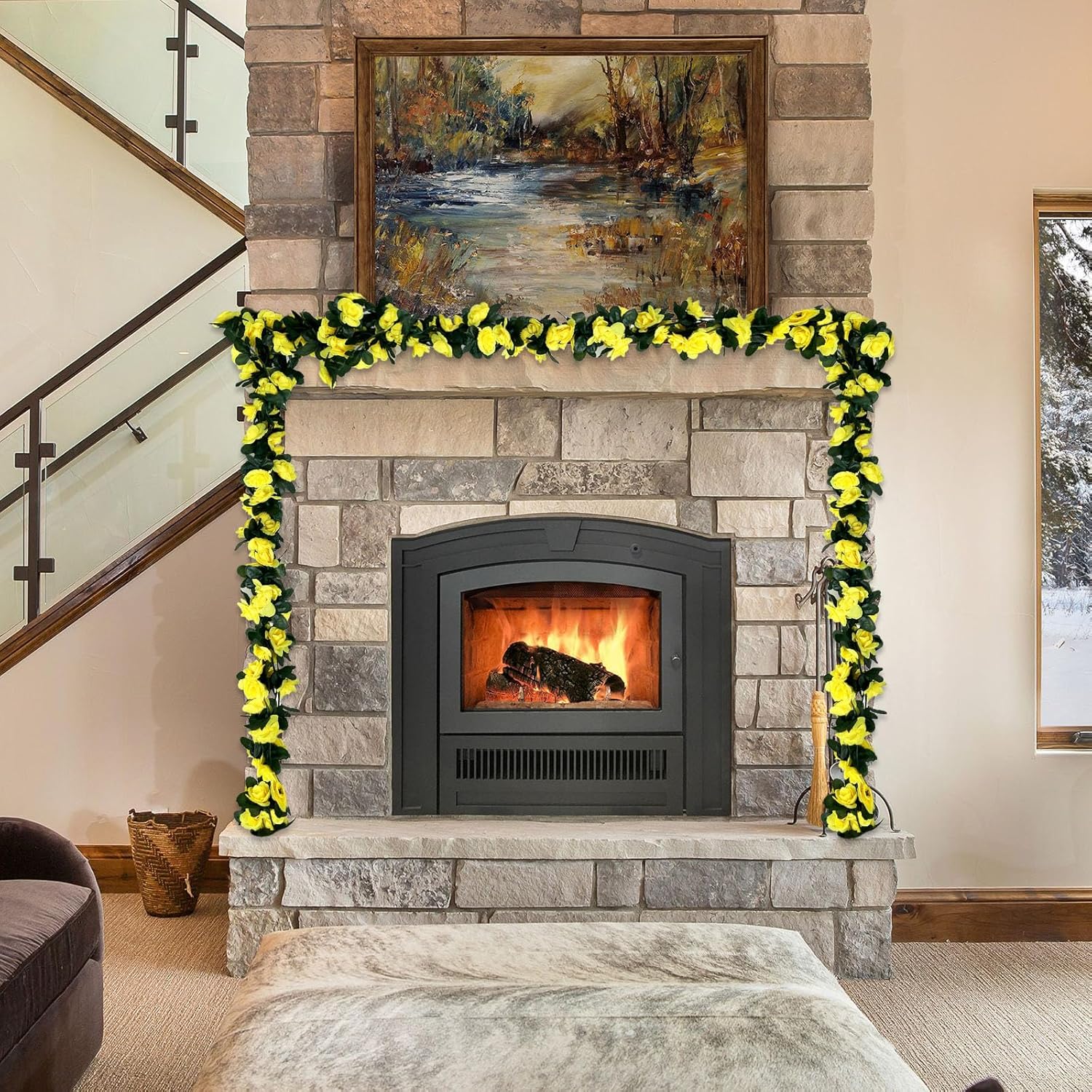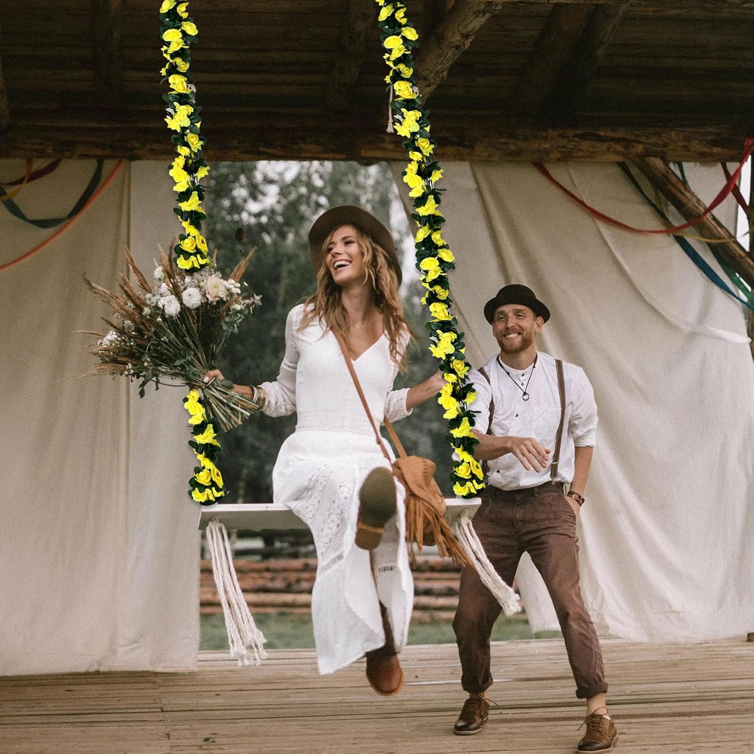 16Pcs 126Ft Yellow Rose Garland, Fake Rose Hanging Flowers, Artificial Flower Vine, Hanging Floral Vine Garland for Wedding, Birthday Party, Wall Arch, Halloween, Christmas Garden Backdrop Decor